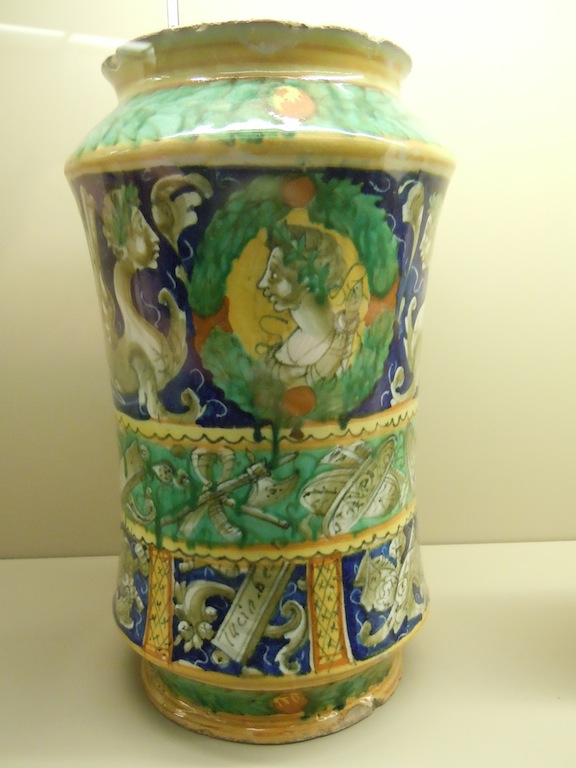 Dans ces conditions, il n'est pas étonnant d'observer dans les vitrines de superbes faïences pharmaceutiques . Ainsi dans l'aile nord du rez-de-chaussée le musée présente ses collections depuis l'Antiquité jusqu'à la Renaissance et nous pouvons ainsi découvrir de rares faïences stannifères ainsi que de rares objets des principales faïenceries qui excellaient au XVIIIème siècle.