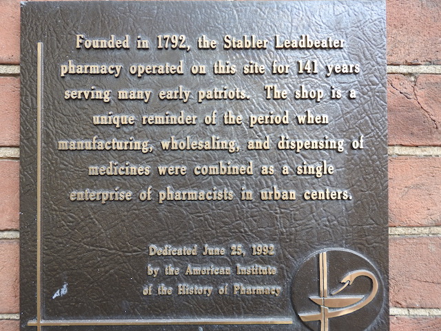 En tant que musée aujourd'hui, l'Apothicairerie Stabler-Leadbeater offre un aperçu de cette entreprise familiale unique et de la vie des employés et des clients de l'Apothicaire. Il tire son nom de son fondateur Edward Stabler et successeur de la famille John Leadbeater.