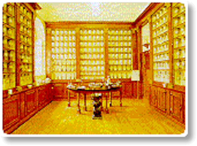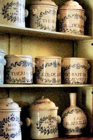 L'apothicairerie du XIXème siècle, possède une collection très importante de pots et de récipients de toutes sortes, dont certains contiennent encore des produits aux senteurs prenantes. Ils sont placés sur les étagères d'une boiserie en bois massif. Quelques pots XVIIIème siècle sont également présents.