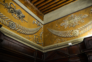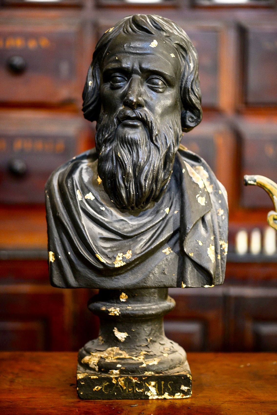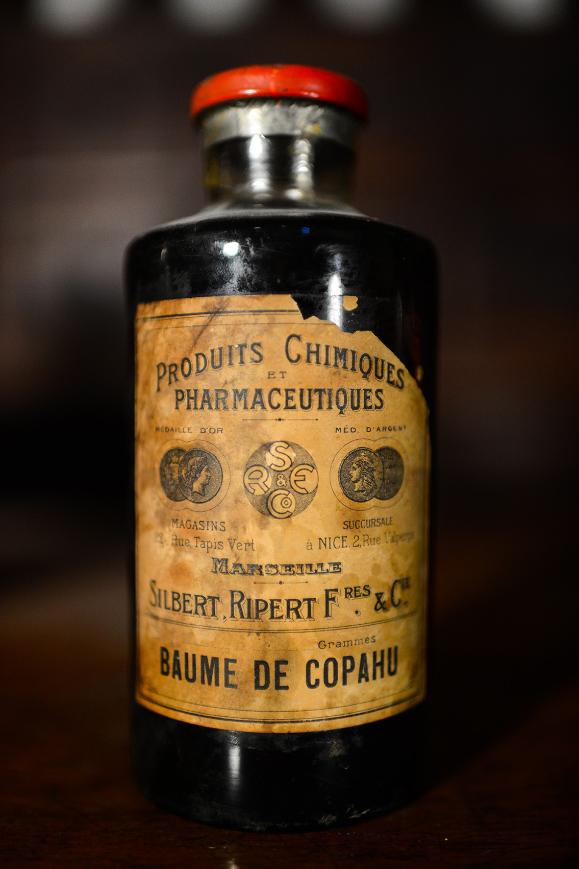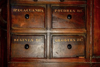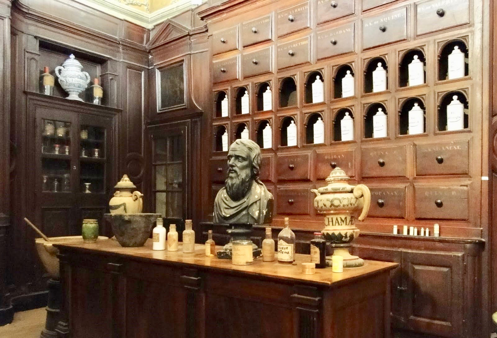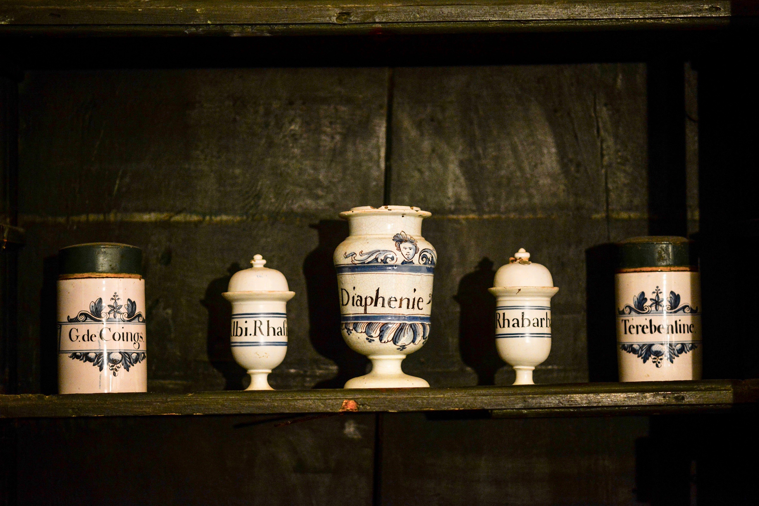La pharmacie et la salle d’archives ont conservé leurs boiseries anciennes et leurs armoires en noyer avec pilastres ajourés ornés de rosaces, et chapiteaux en coquille, exécutées par le menuisier Capeau, ainsi qu’un mortier en marbre blanc, deux vases en faïence de Moustiers, et les pots et flacons d’origine.