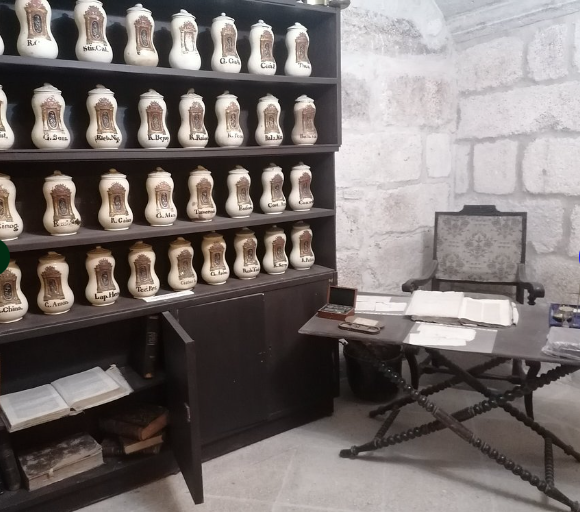 Dans ce merveilleux monastère se trouve les restes d'une pharmacie du XIXème siècle dont la plupart des pots sont à destination de plantes