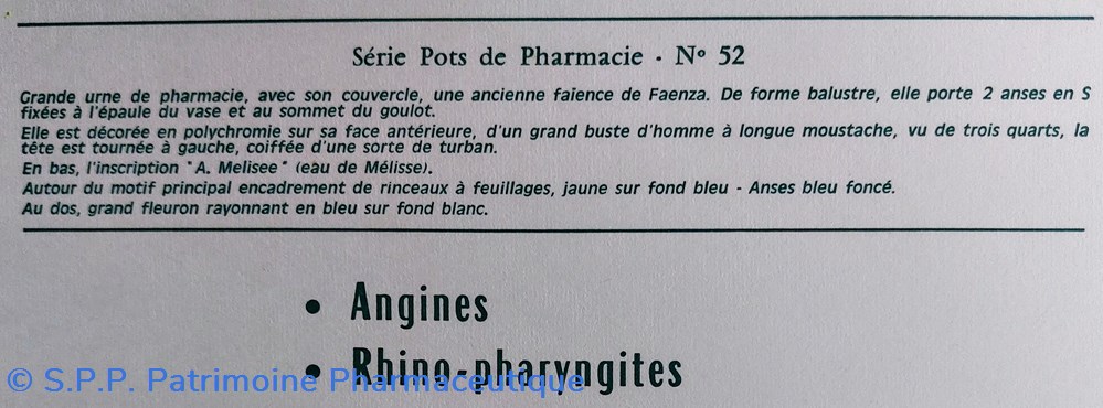 ROUSSEL N°52 URNE de pharmacie - Faenza