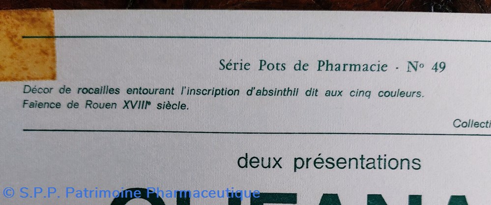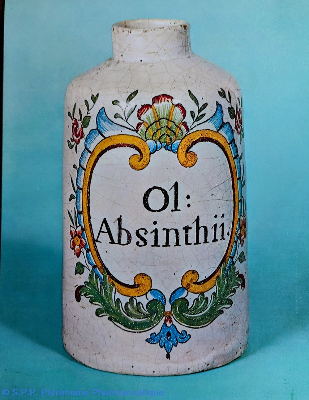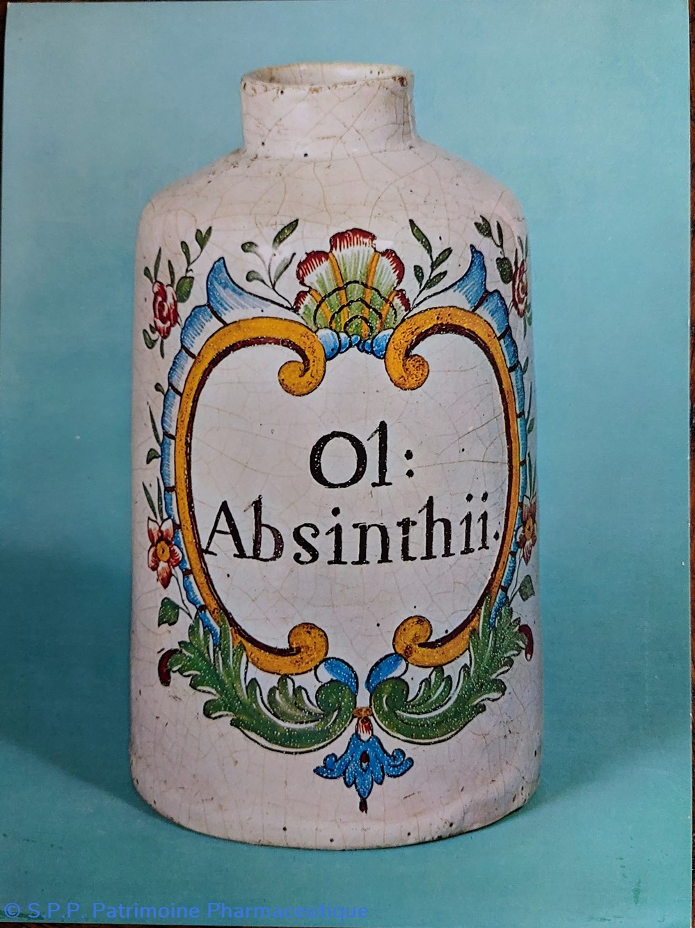 Au recto : Bouteille faience de Rouen XVIII - " Absinthii"