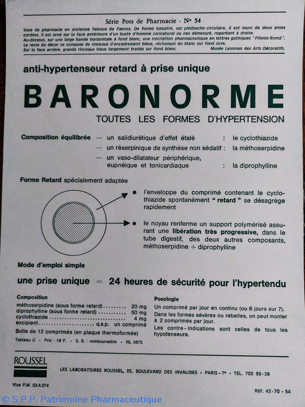 Au verso : Promotion d'un anti-hypertenseur " BARONORME"