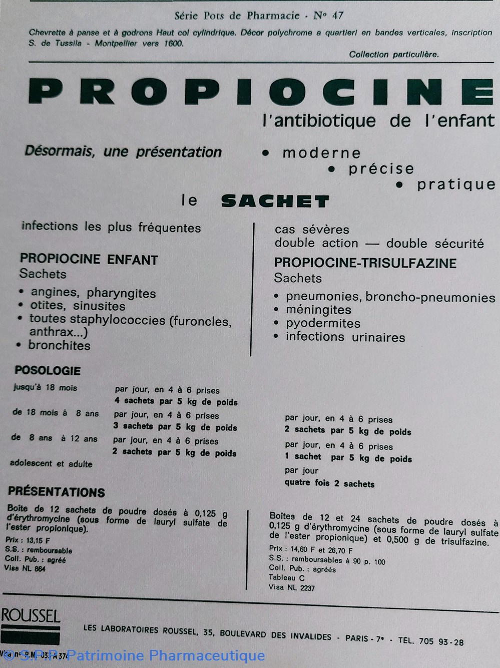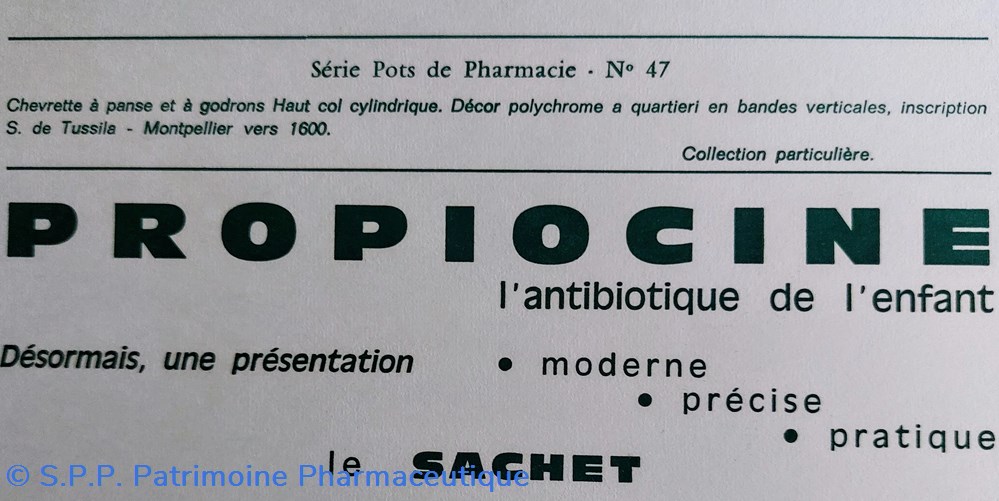 Au verso : Promotion d'un antibiotique pour enfant PROPIOCINE