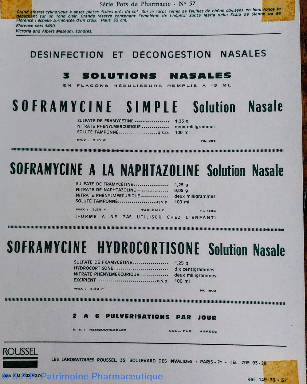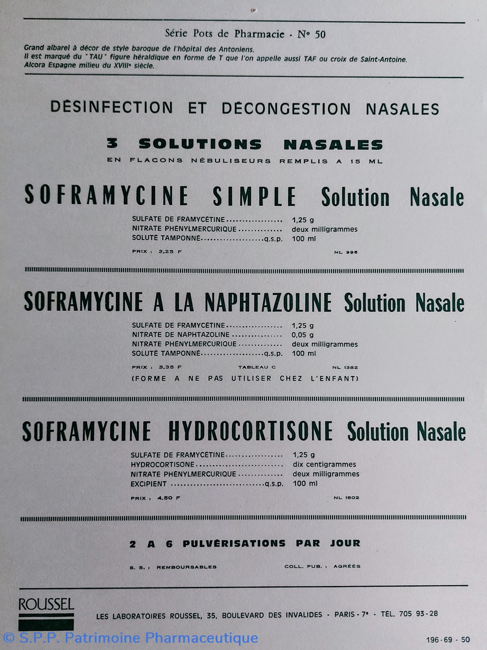 Au verso : Promotion de 3 solutions nasales SOFRAMYCINE