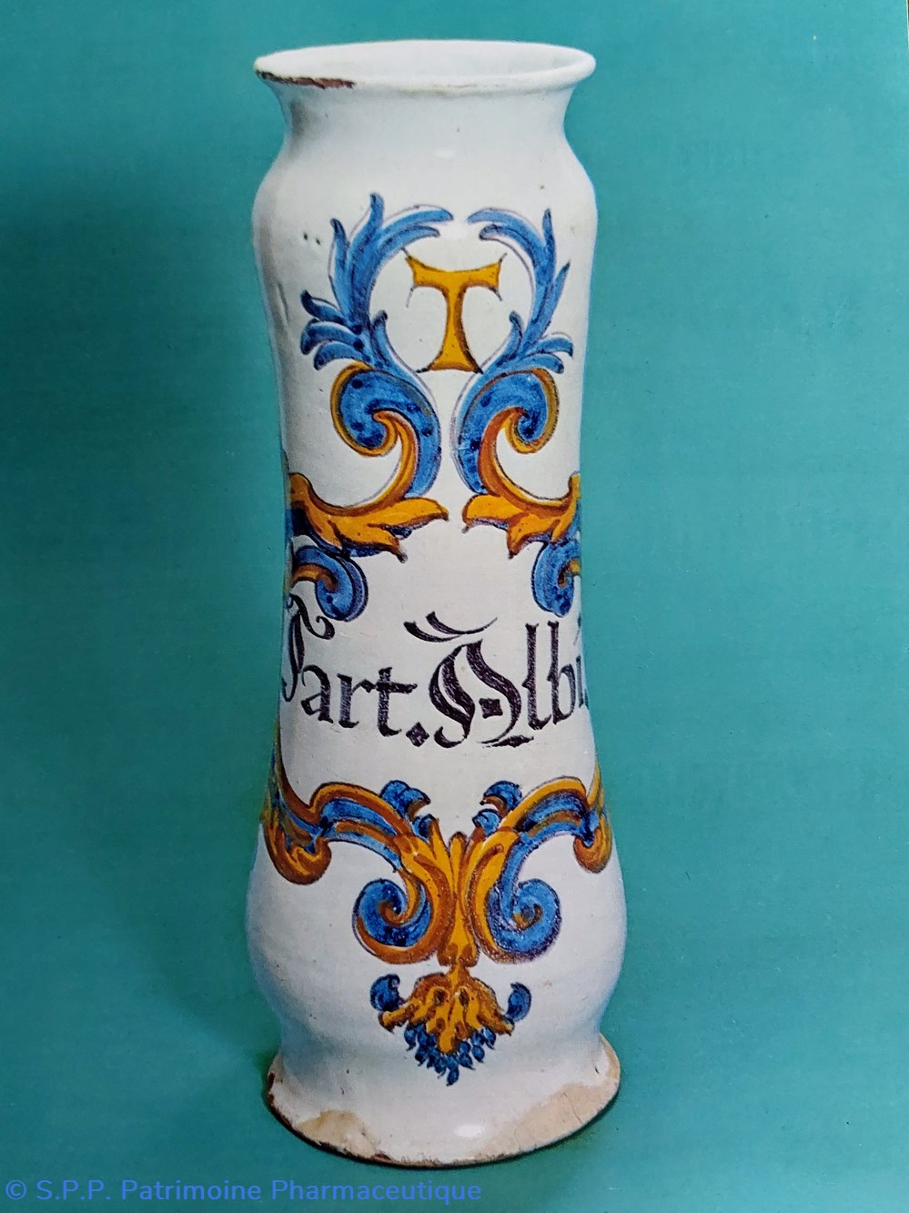 Au recto : Grand Albarel style baroque de l'hôpitaldes Antoniens - Marqué " TAU" ALCORA Espagne - milieu XVIII