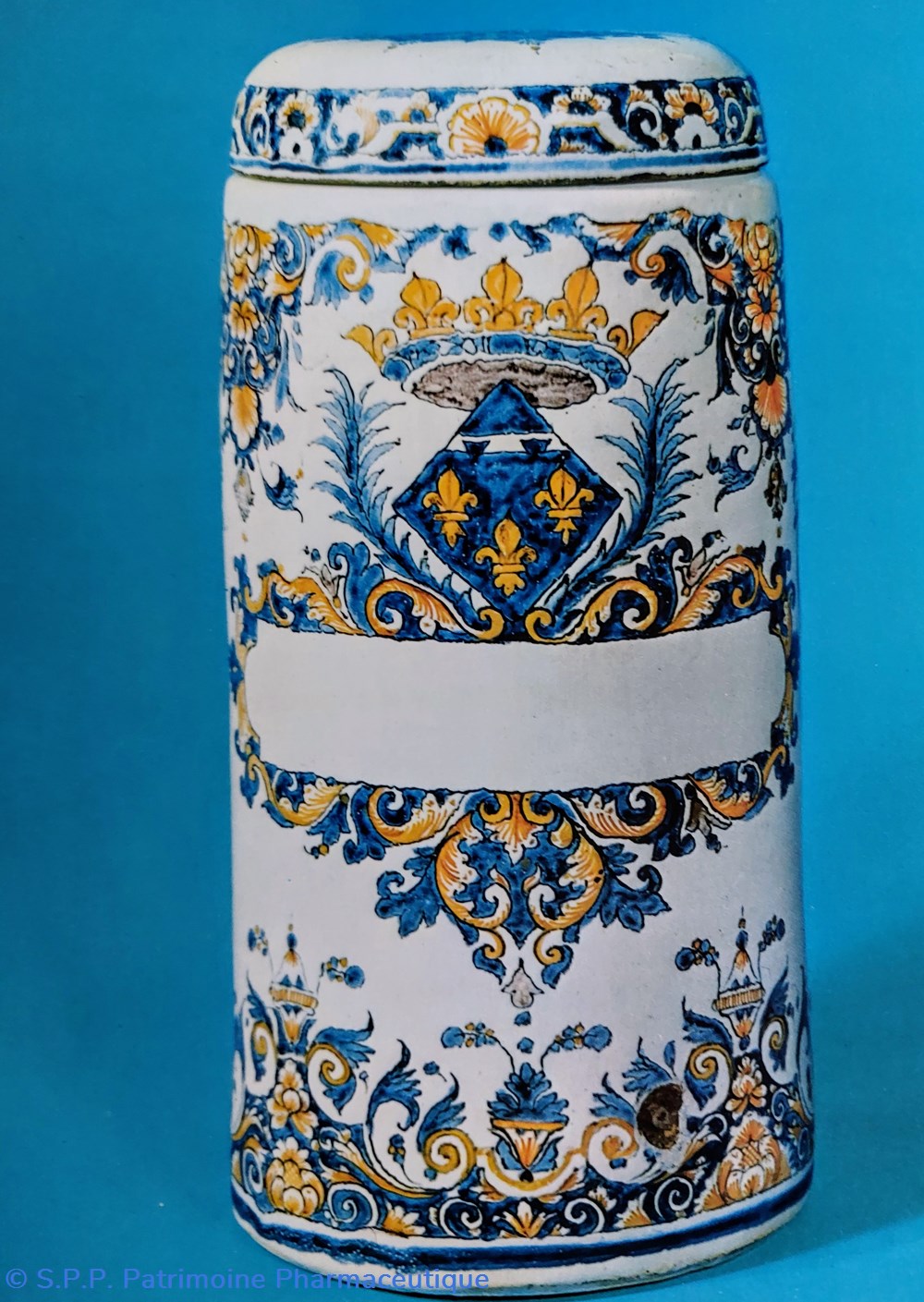 Au recto Vase cylindrique aux armes de Louise Adélaide d'Orléans , abesse de Chelles fille du Régent - Paris - Attribué traditionnellement à DIGNE rue de la Roquette XVIII