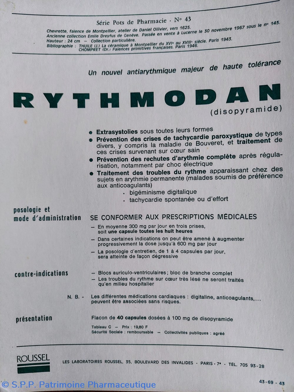 Au verso : Promotion d'un antiarythmique RYTHMODAN