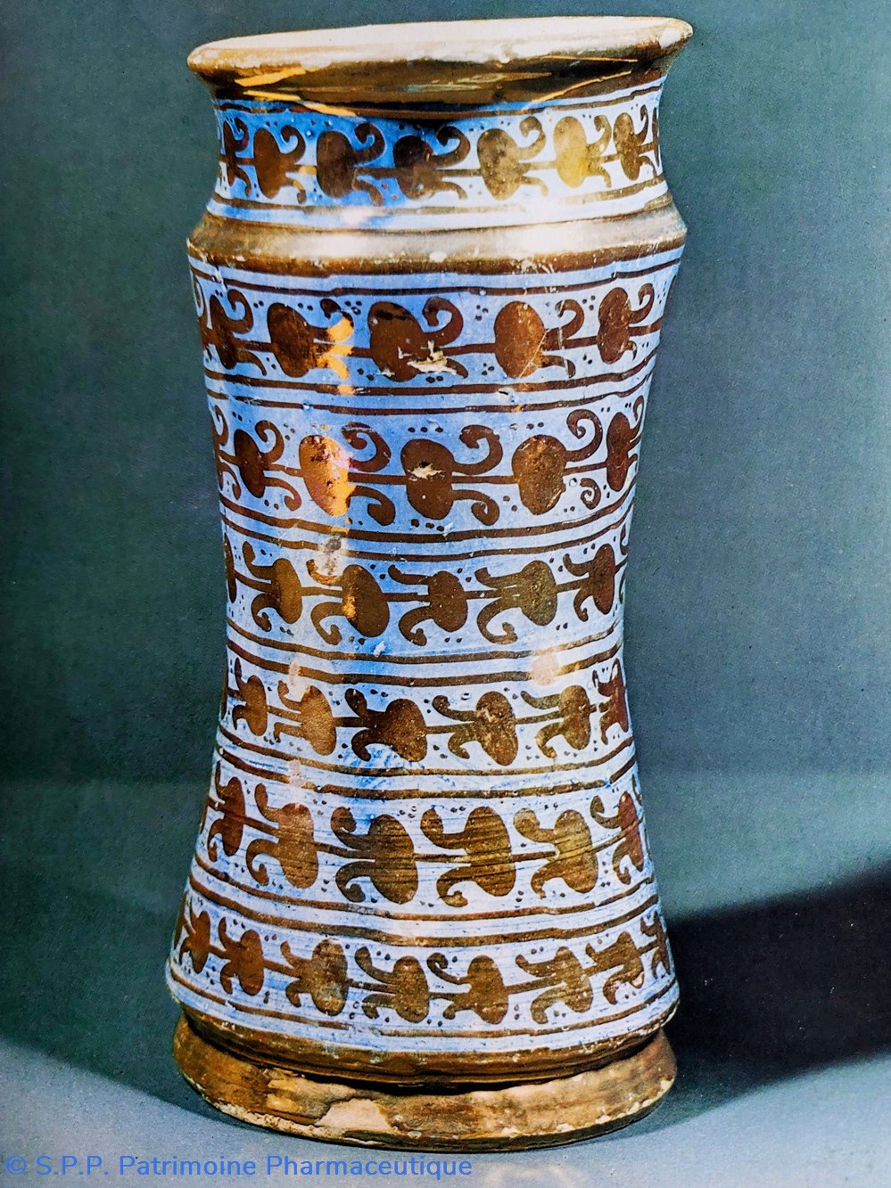 Au Recto : ALBAREL Pot de pharmacie Hispano Moresque XVI