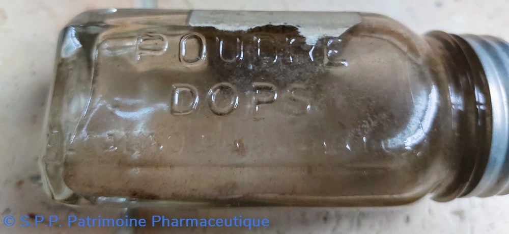 Verre marqué " POUDRE DOPS Alcalino phosphatee" "Dr O. Dubois"