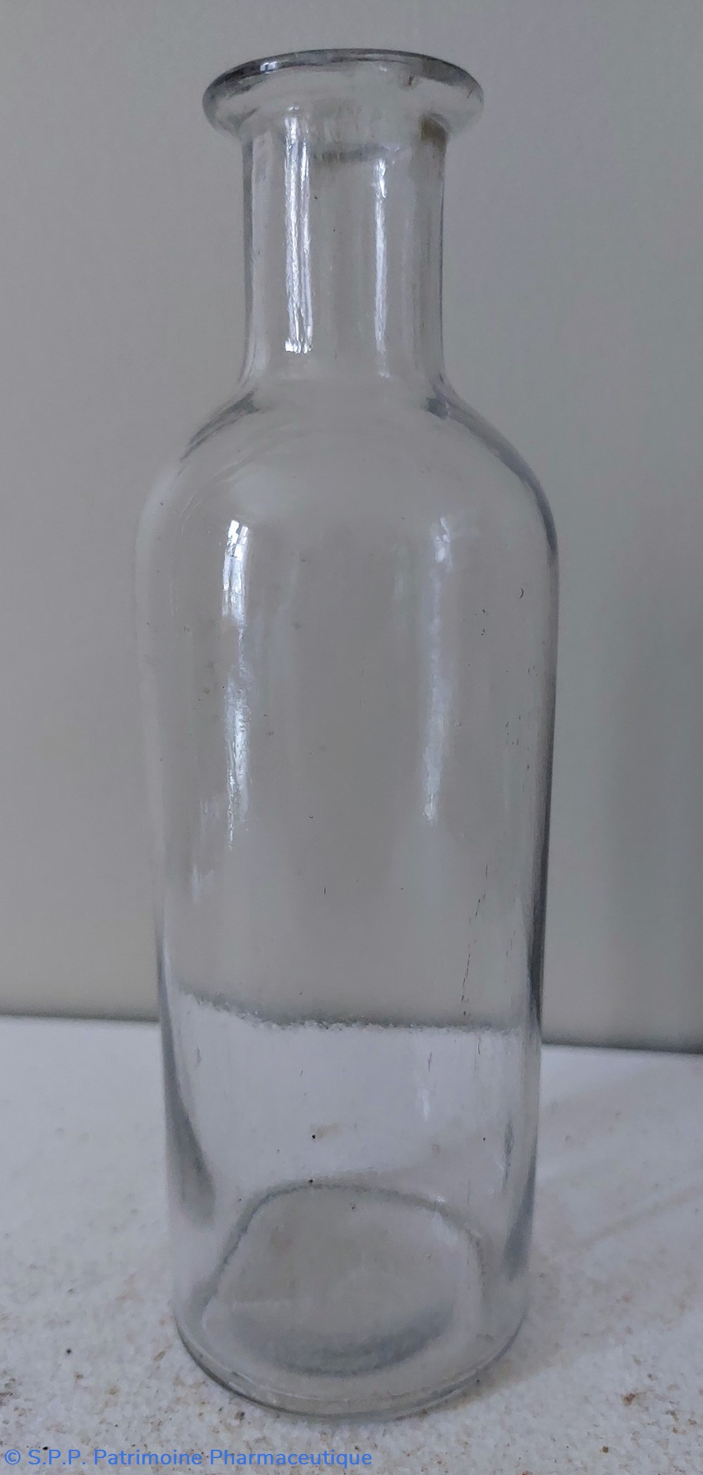 Flacon vide de forme cylindrique en verre blanc hauteur 20 cm