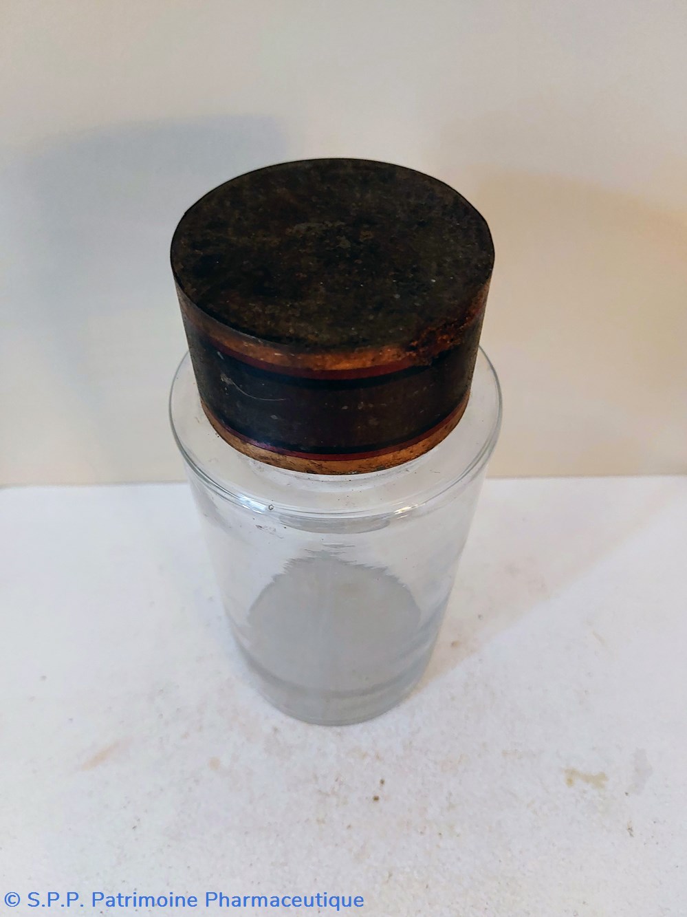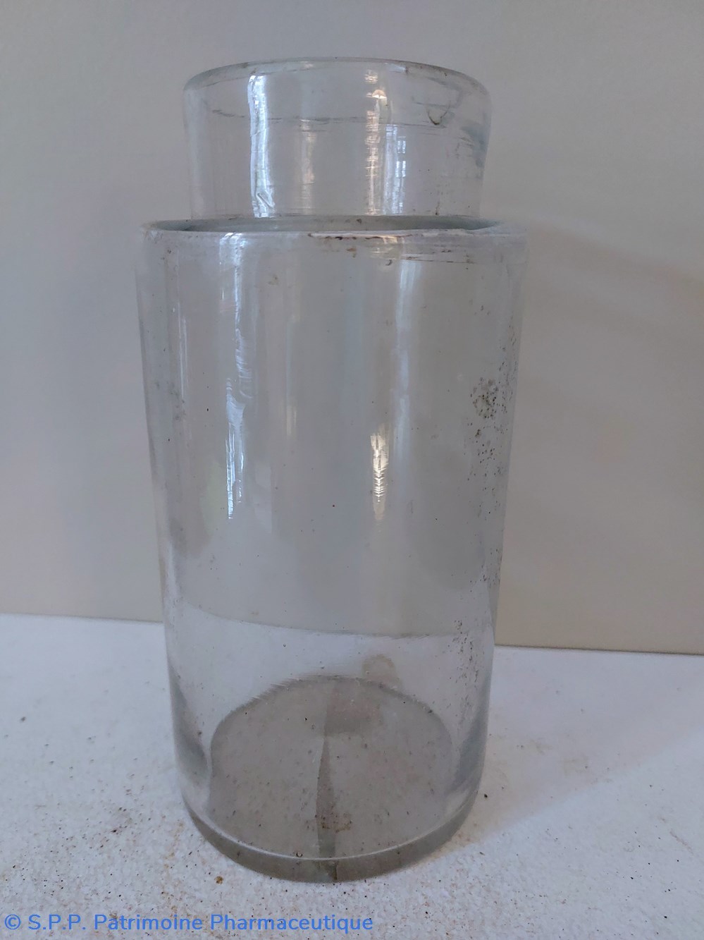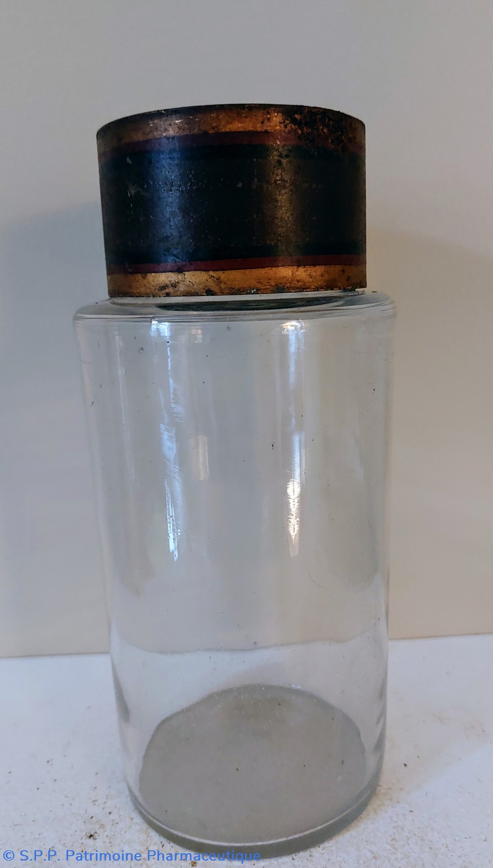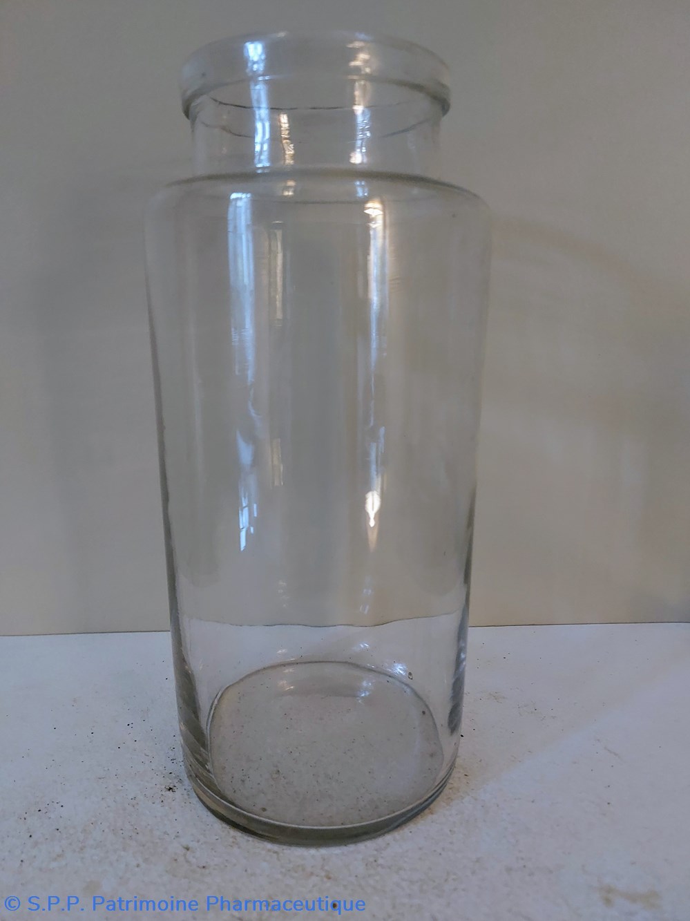 Pot de Pharmacie en verre vide et sans étiquette ni bouchon.