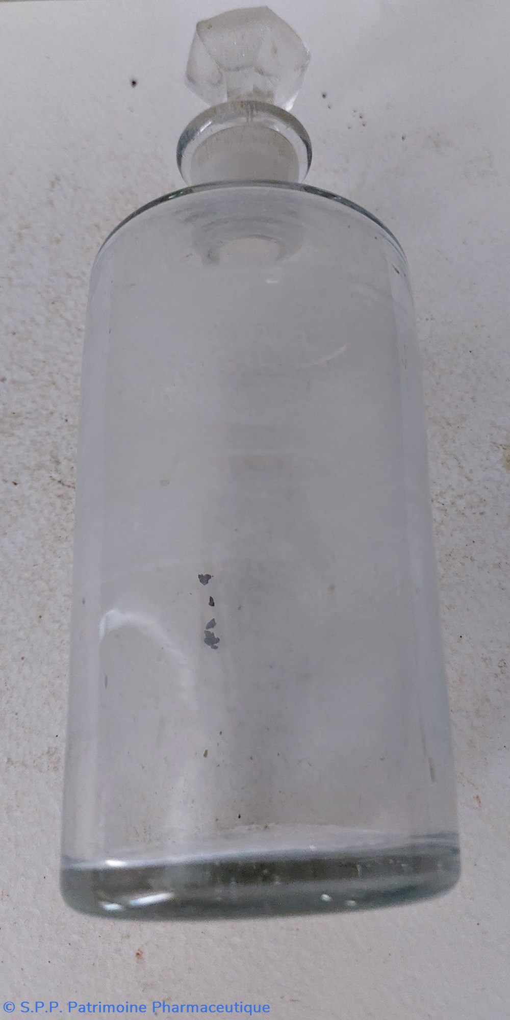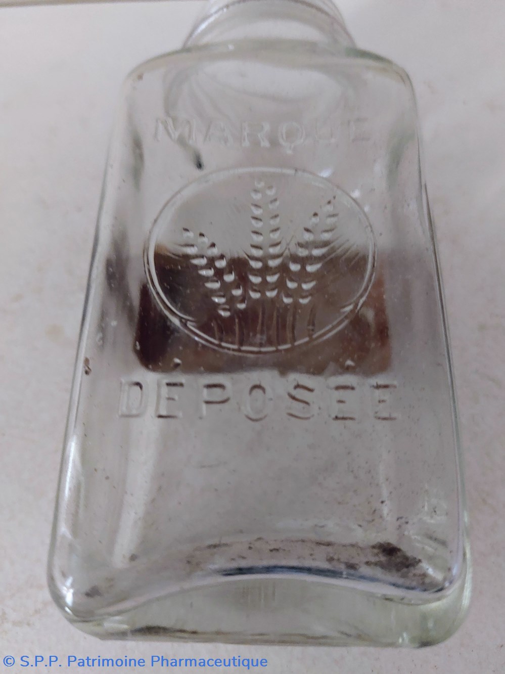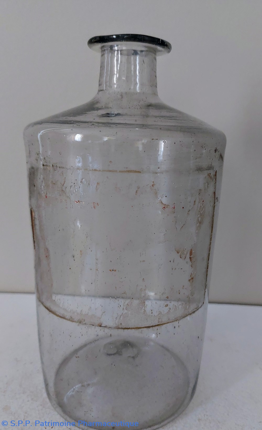 Une trace d'étiquette sur le ventre du flacon