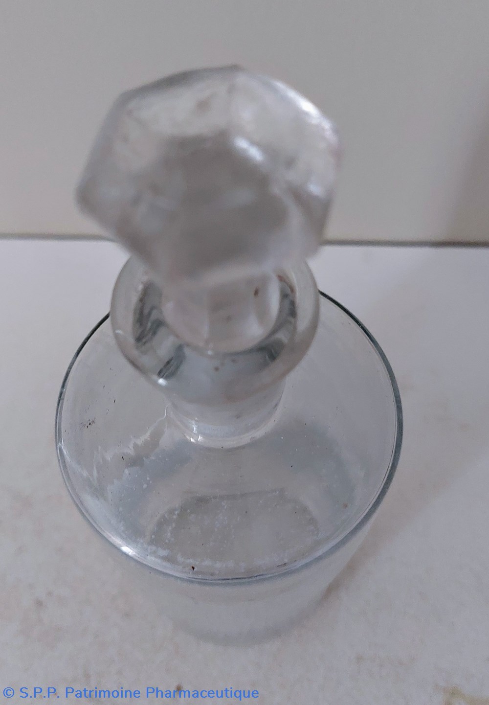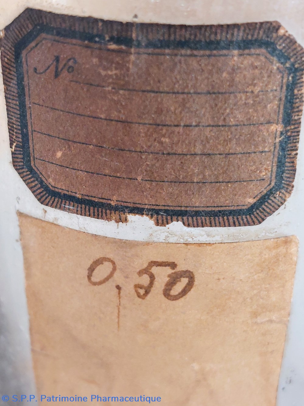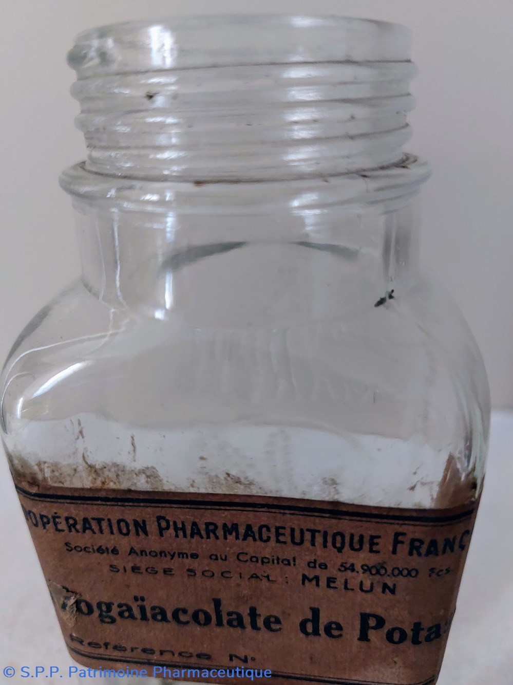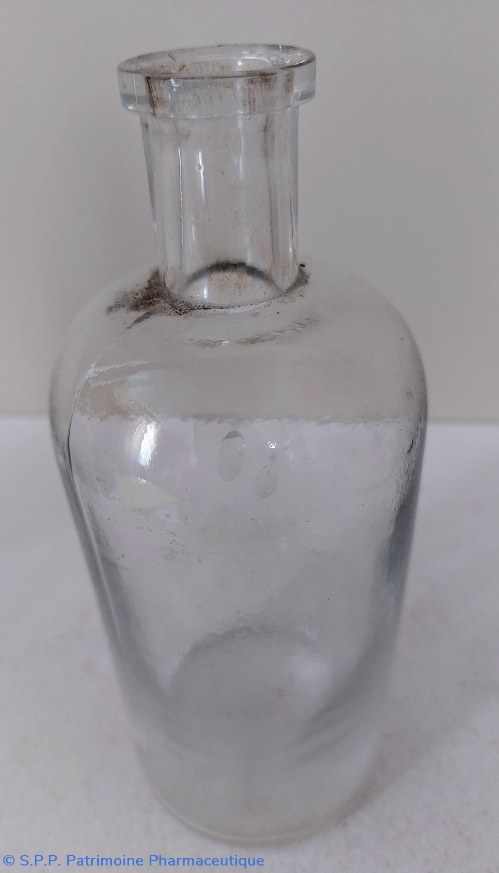 Une trace d'étiquette sur le ventre du flacon