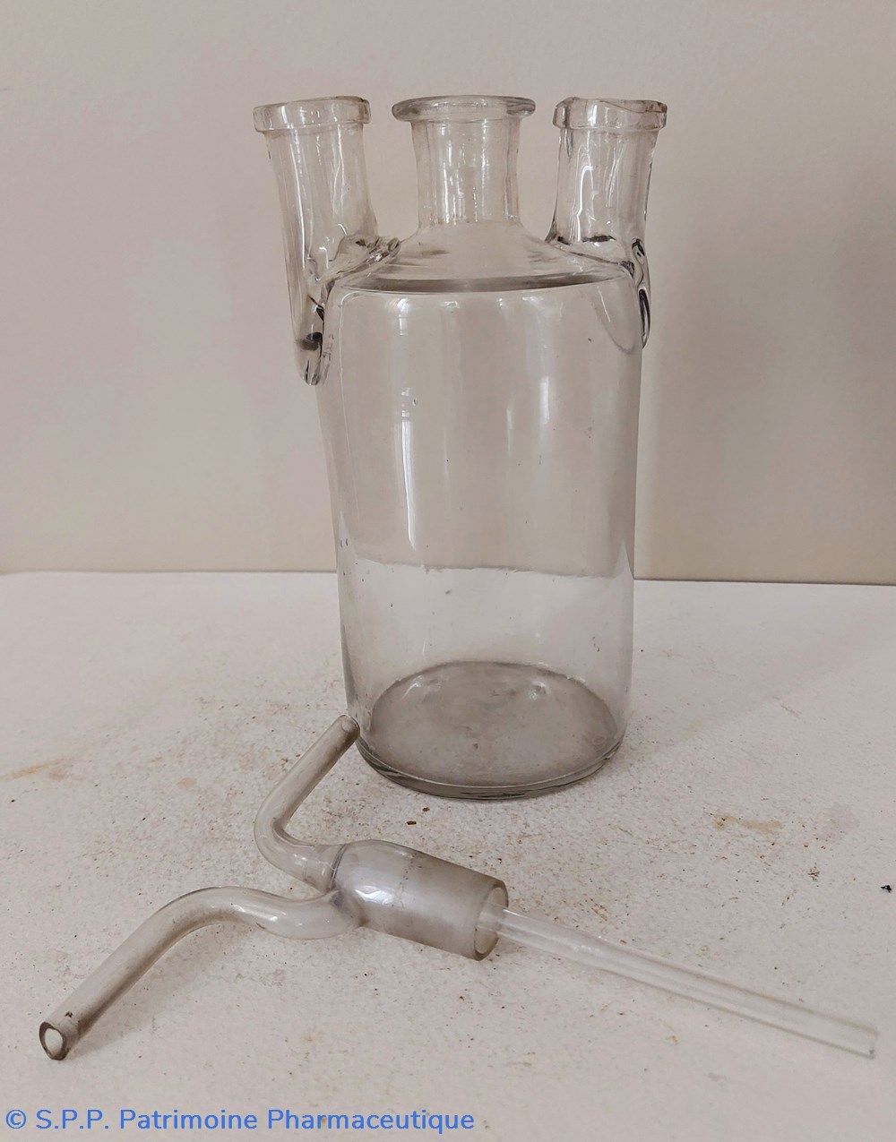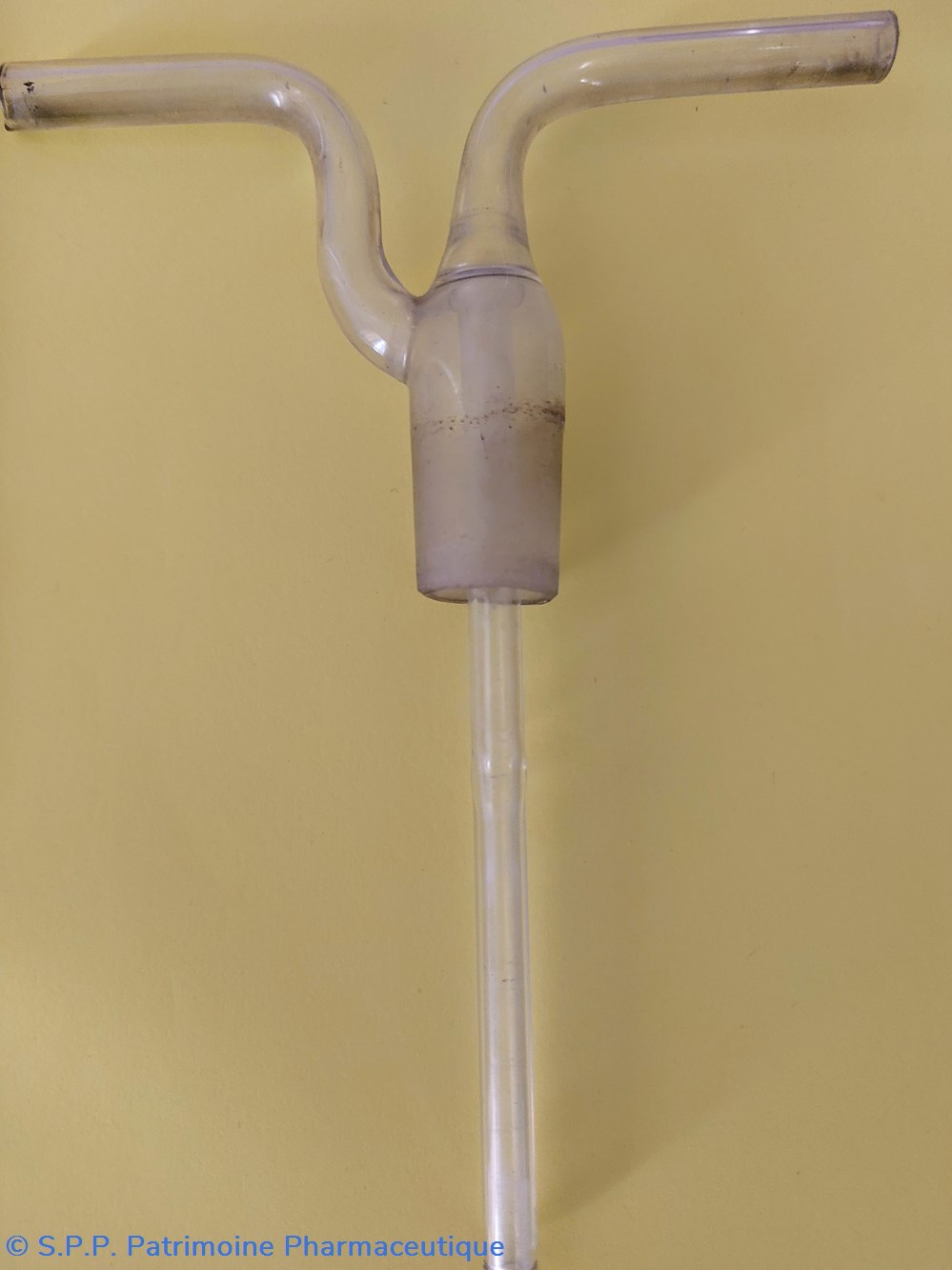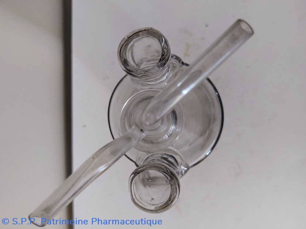 Hauteur 17. 5 cm surmonté d'un tube verre Hauteur totale 23 cm. Ce tube est amovible et descend dans le corps central sur env 10 cm et se prolonge en tubes en sorties latérales supérieures. Cet accessoire amovible est - il l'accessoire de cet objet ?