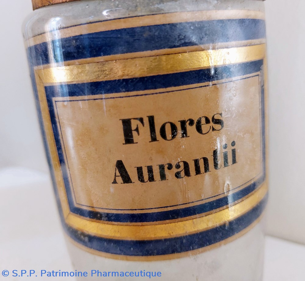 Flacon en verre blanc ayant contenu des Flores Aurantii