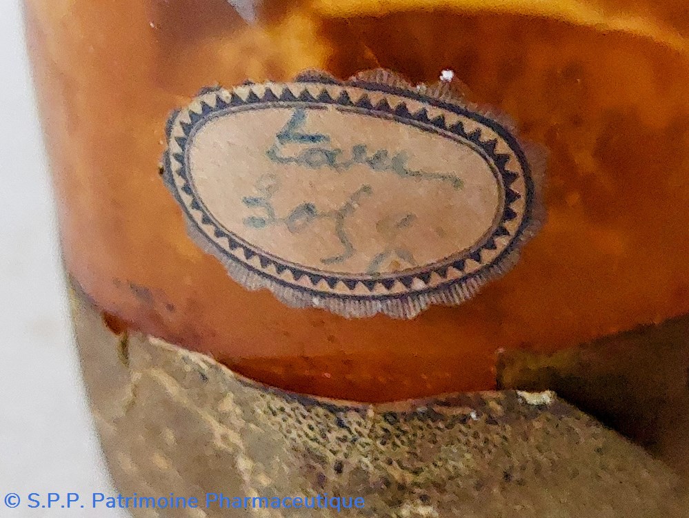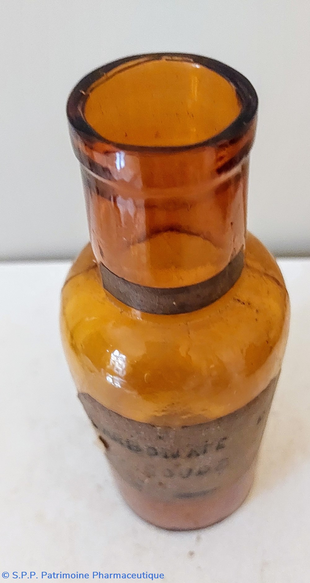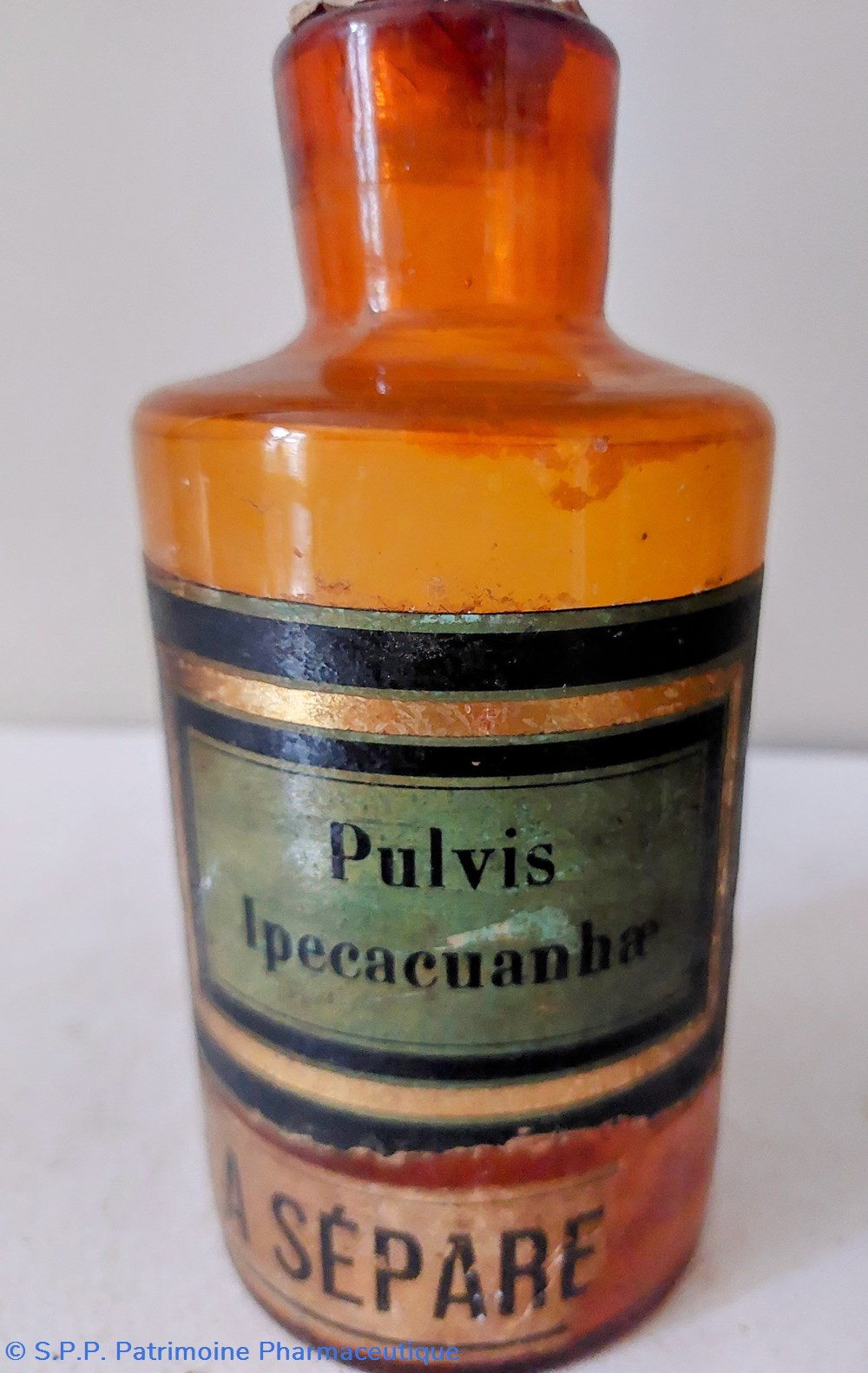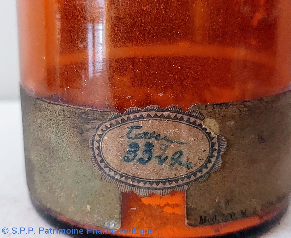 Flacon en verre ambré ayant contenu du Pulvis Ipecacuanhae