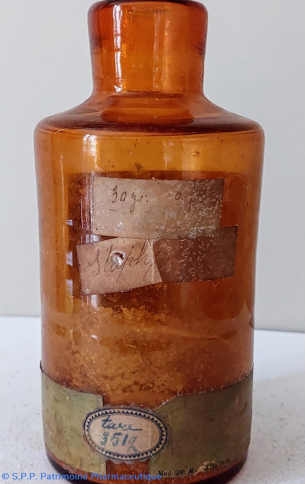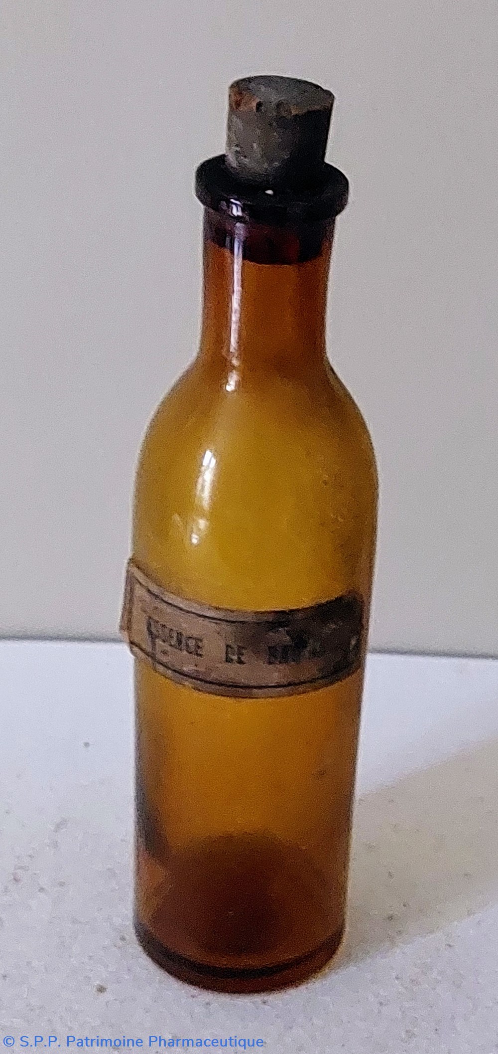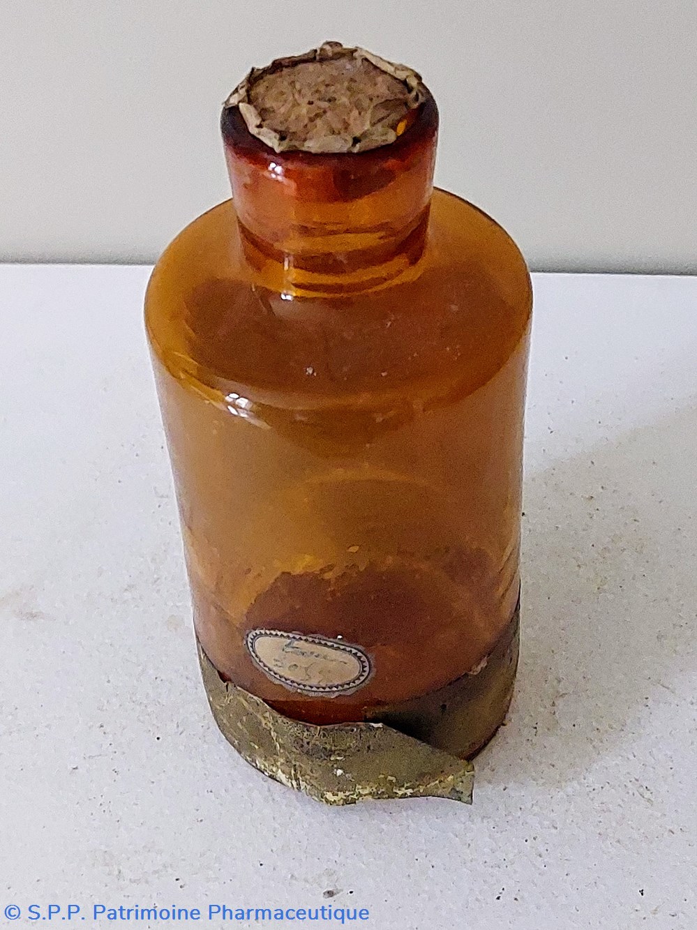 Flacon en verre ambré ayant contenu du Pulvis Ipecacuanhae
