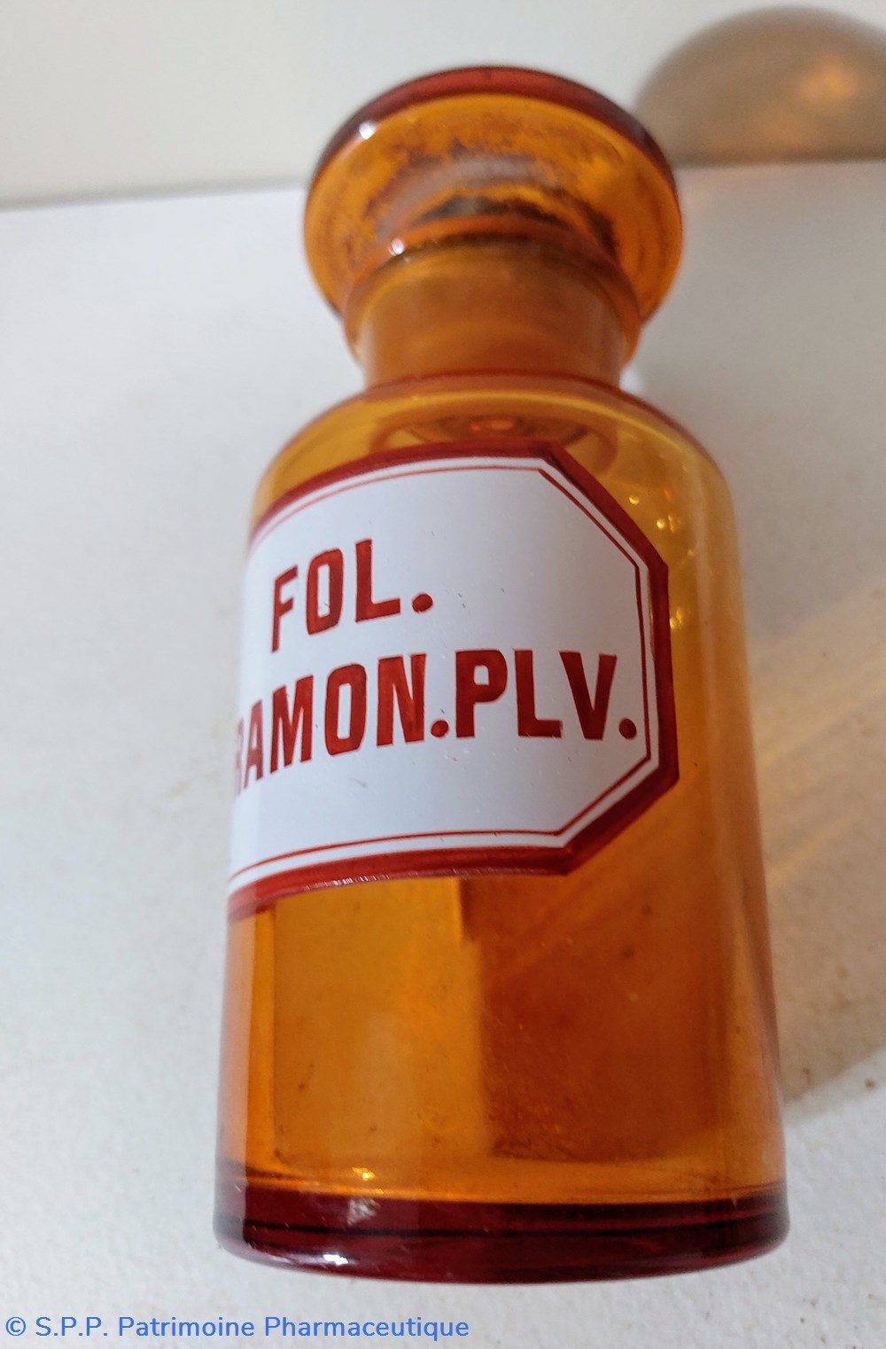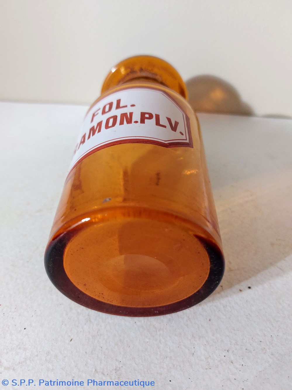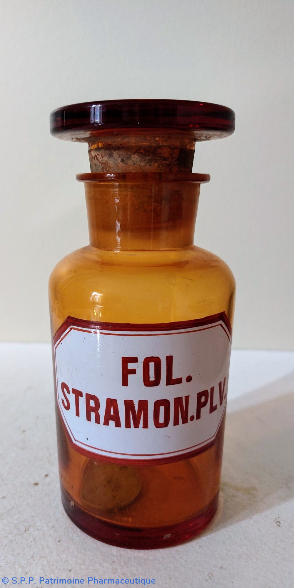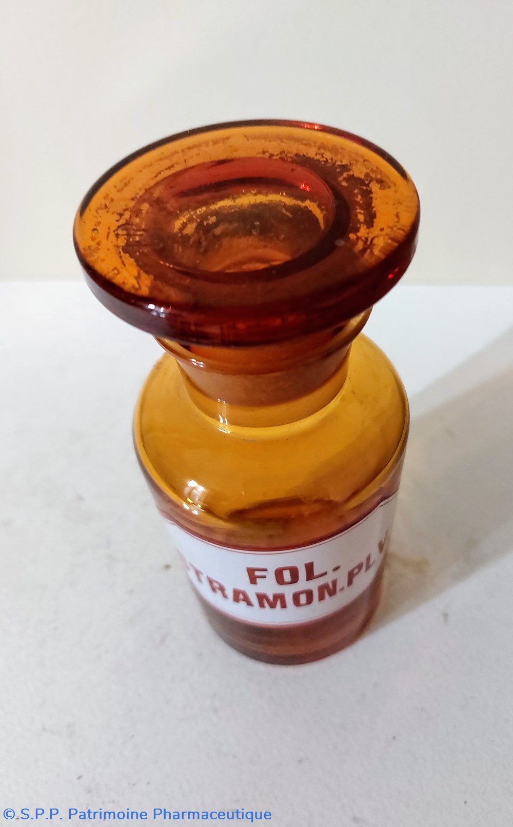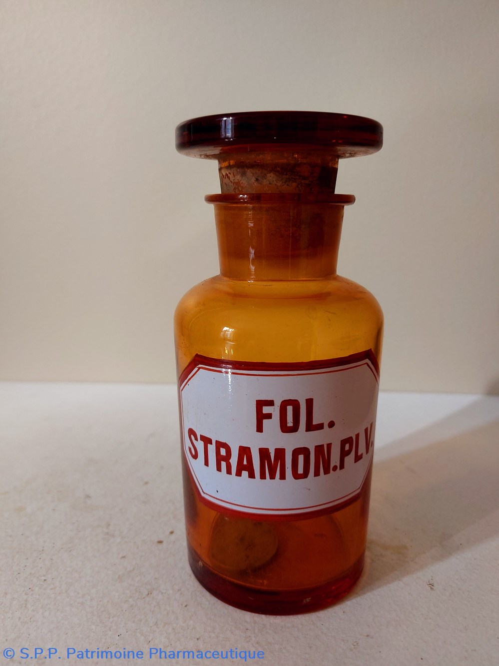 Flacon en verre ambré avec étiquette FOL. STRAMON. PLV.