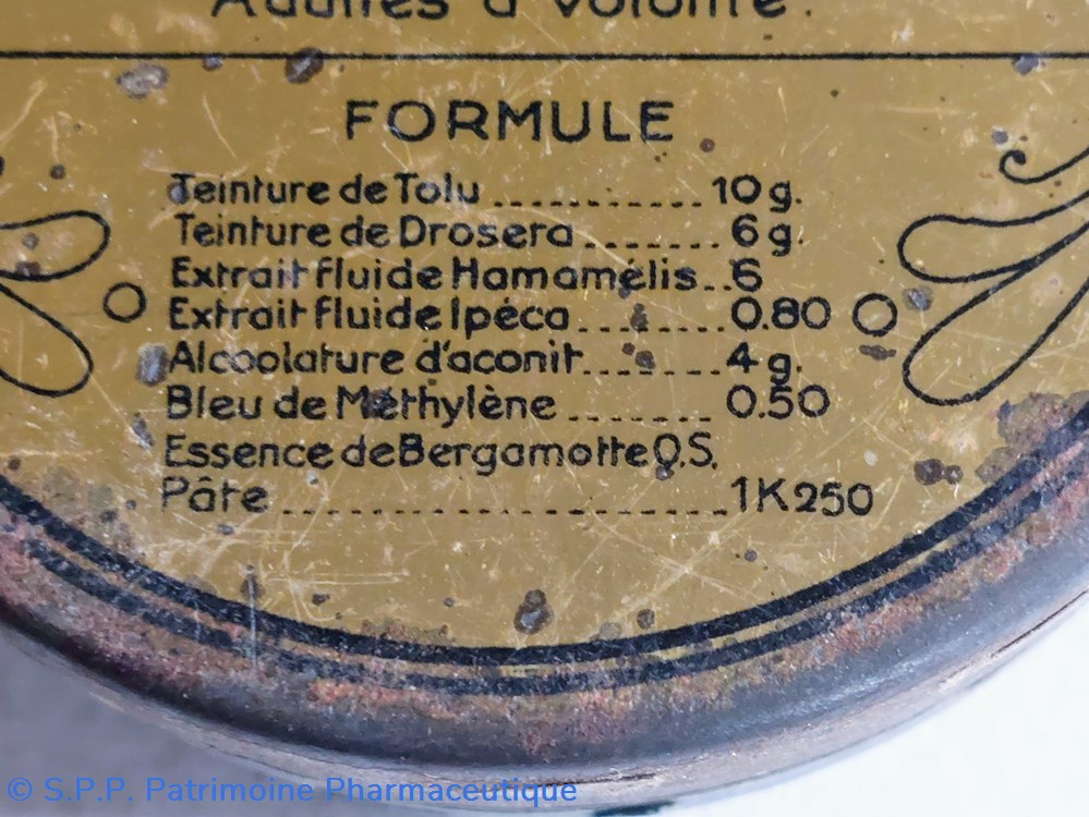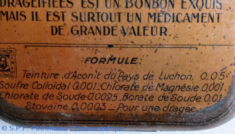 Formule Teinture d'Aconit Souffre Colloïdal Chlorate de Magnésie Chlorate de soude Borate de Soude Stovaine