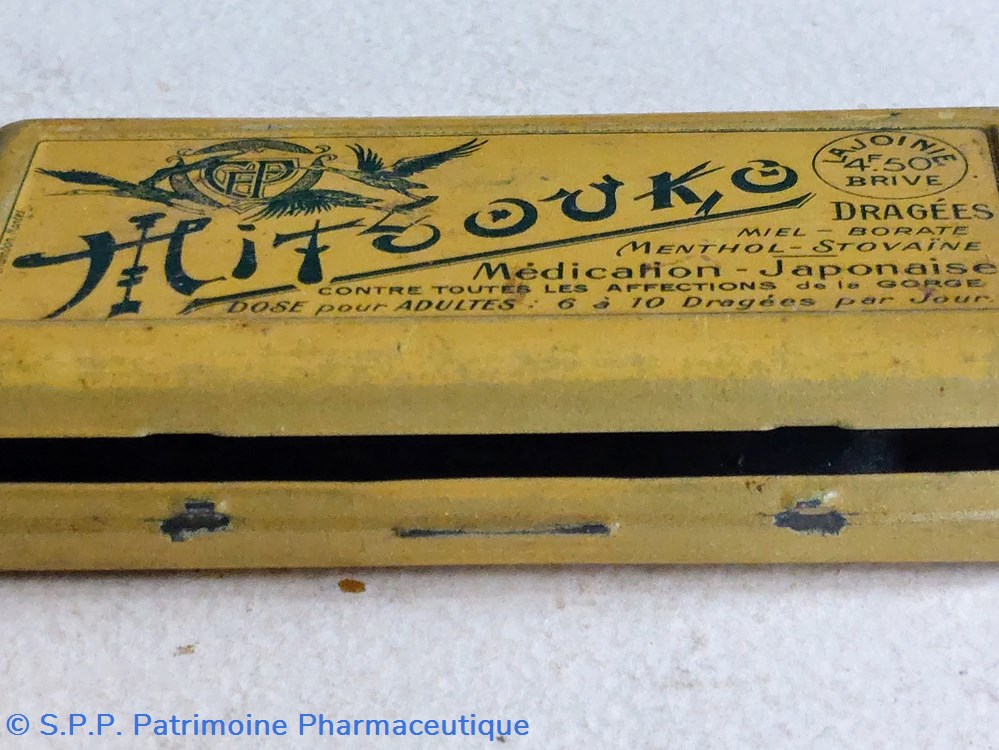Boîte métallique vide ayant contenu des DRAGÉES MITSOUKO Contre les Affections de la gorge