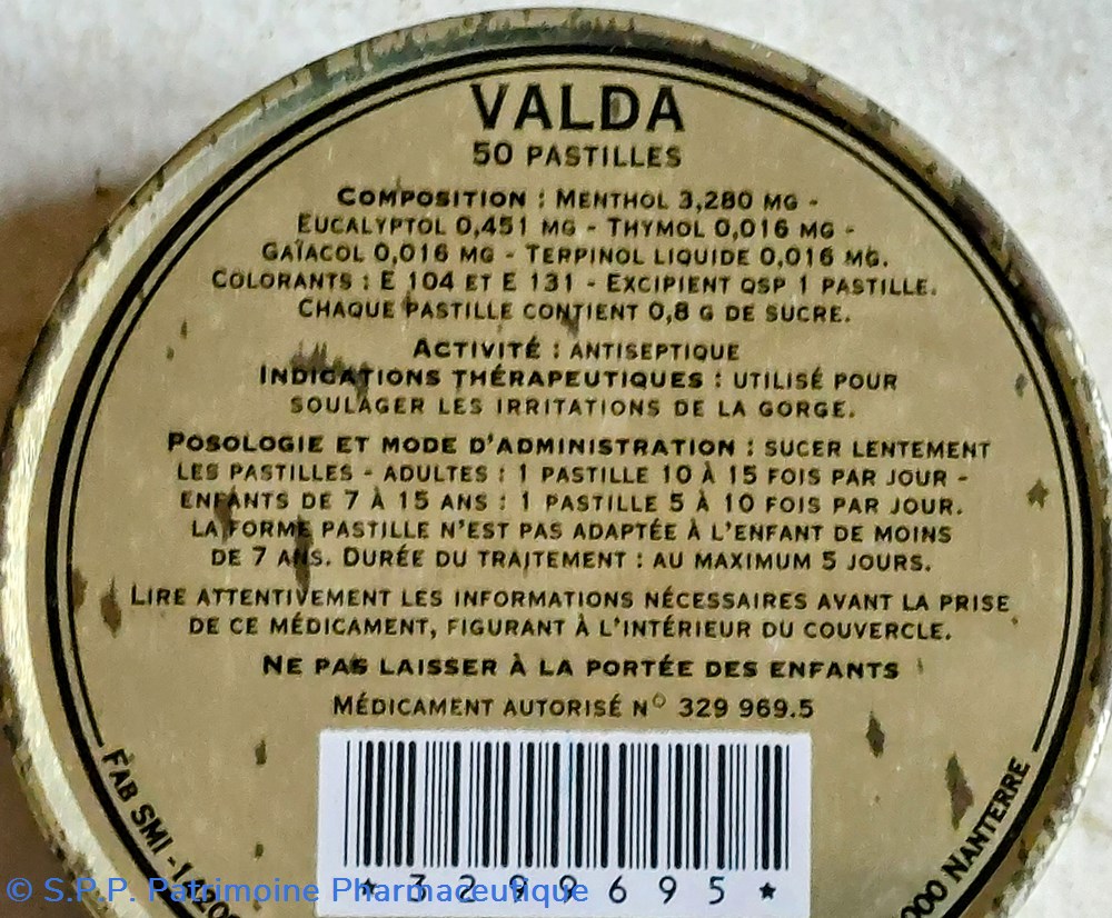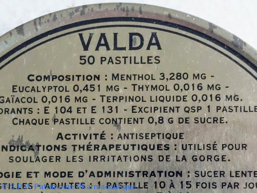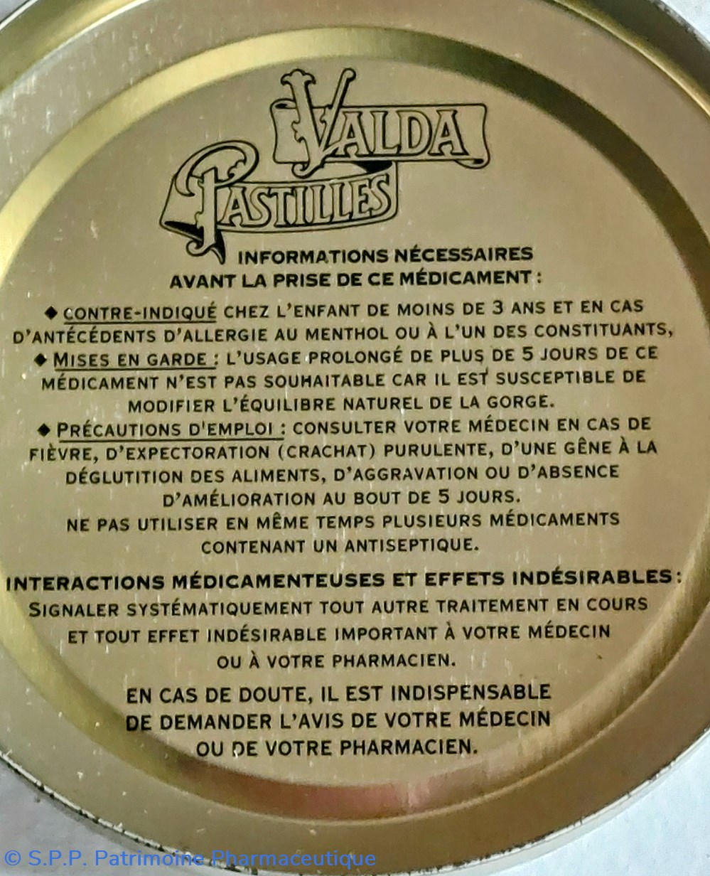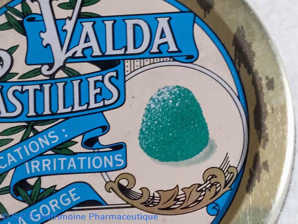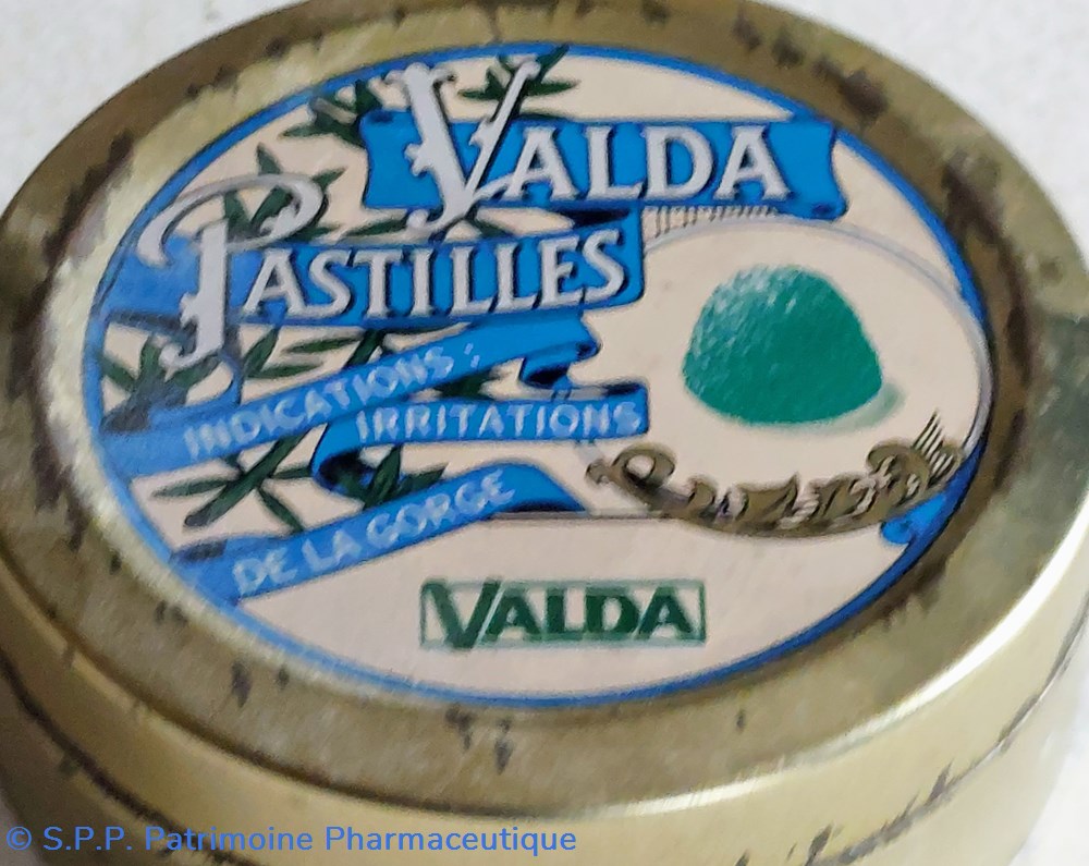 Boîte métallique vide de forme ronde ayant contenu 50 PASTILLES VALDA