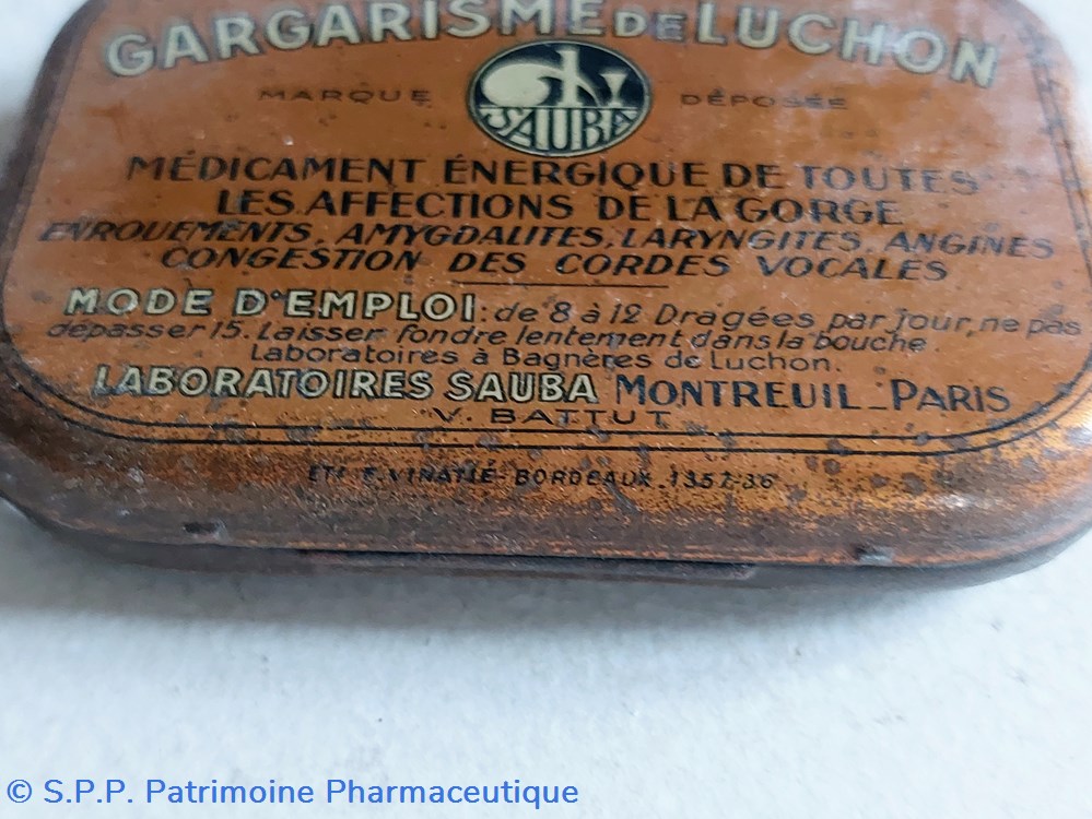 Boîte métallique vide ayant contenu des TABLETTES DRAGÉIFIÉS " GARGARISME DE LUCHON"