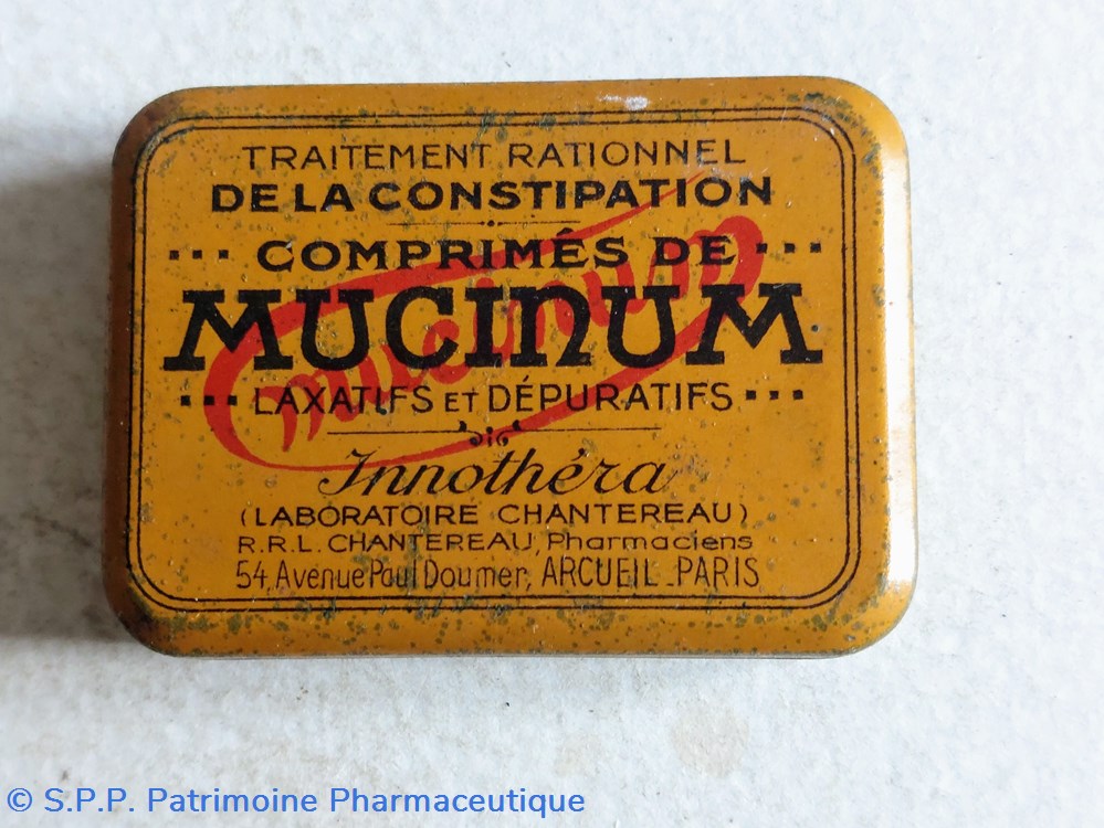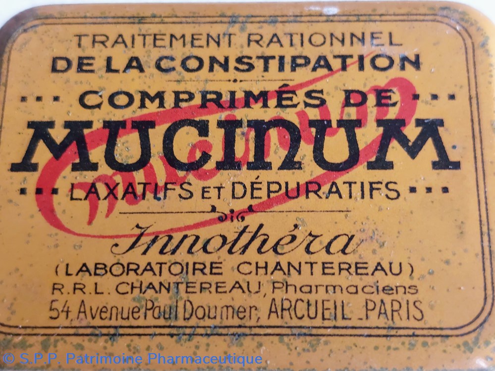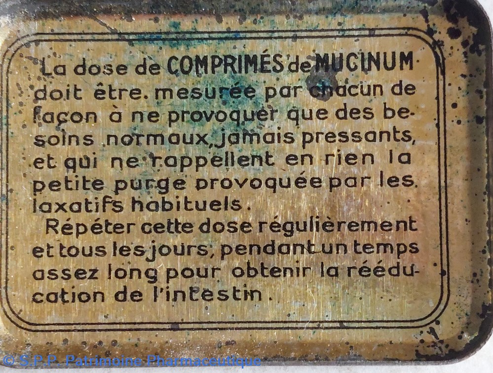 Petite boîte métallique de poche 5*4 *1 cm ayant contenu des comprimés de MUCINUM Laxatifs et Dépuratifs.
