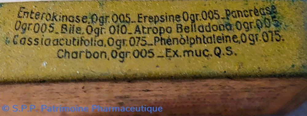 Formule Enterokinase Erepsine Pancréase Bile Atripa Belladona Cassiaacutifolia phenolphtaleine et charbon