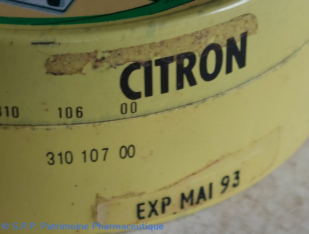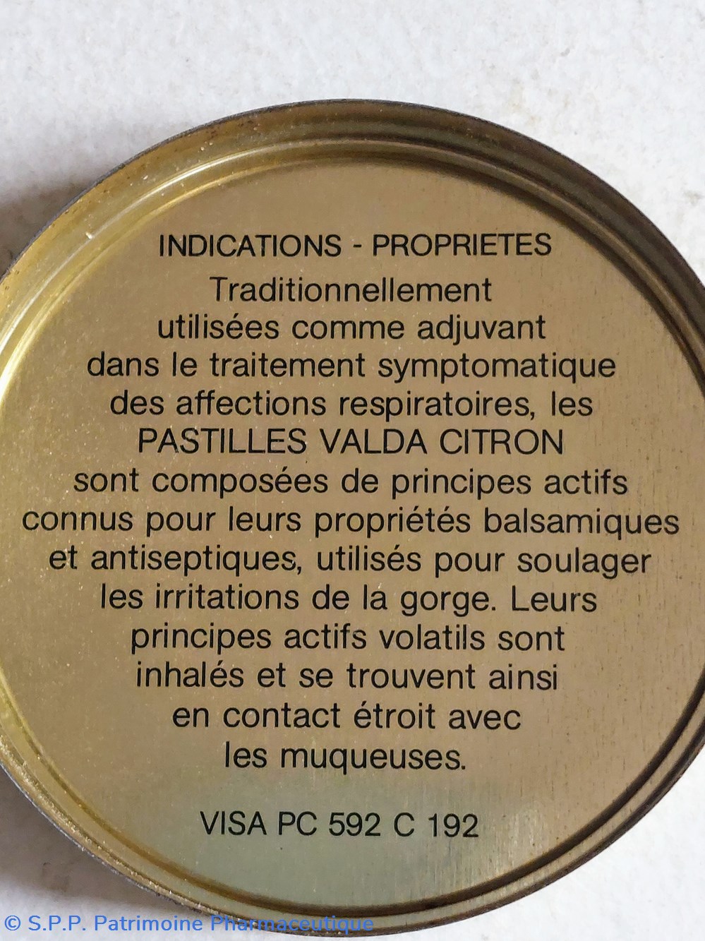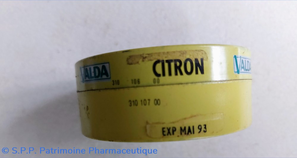 Boîte métallique vide de forme ronde ayant contenu 60 PASTILLES VALDA CITRON
