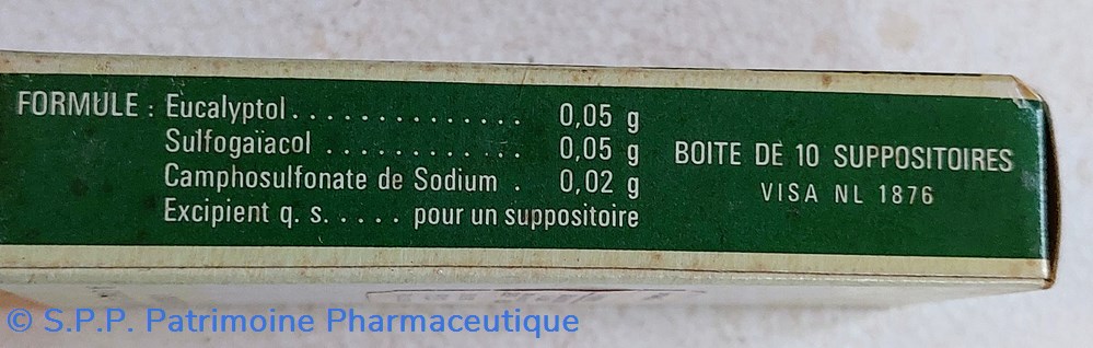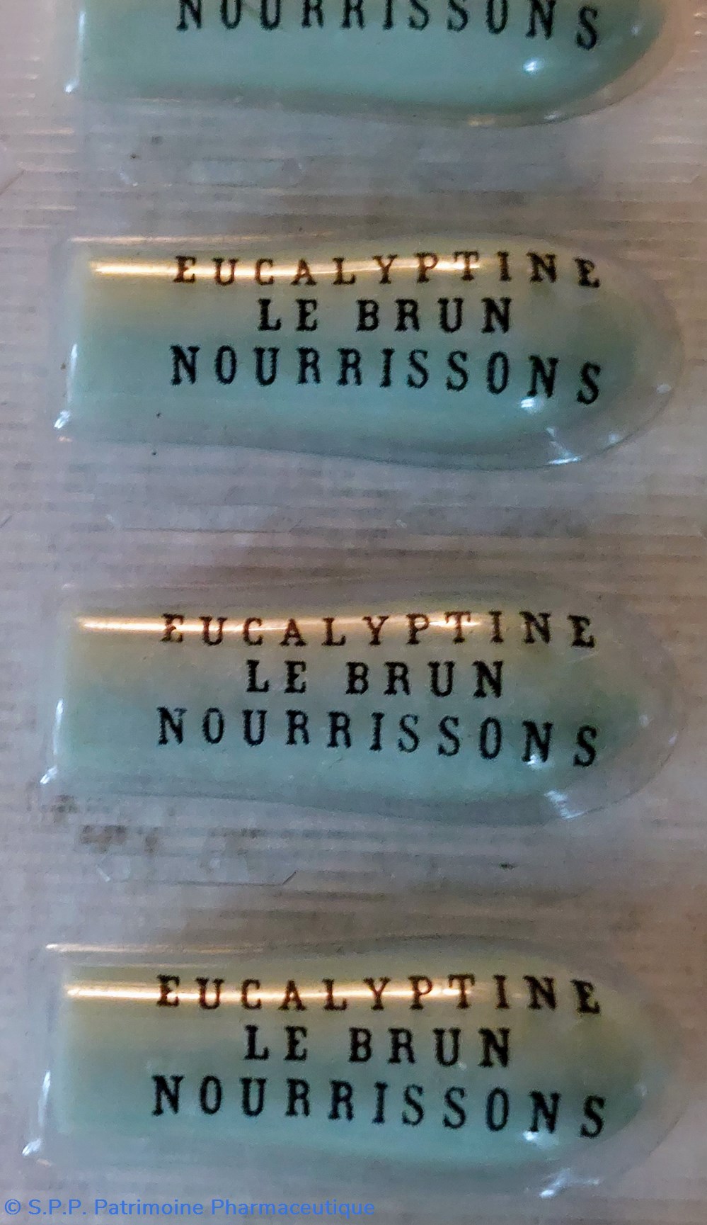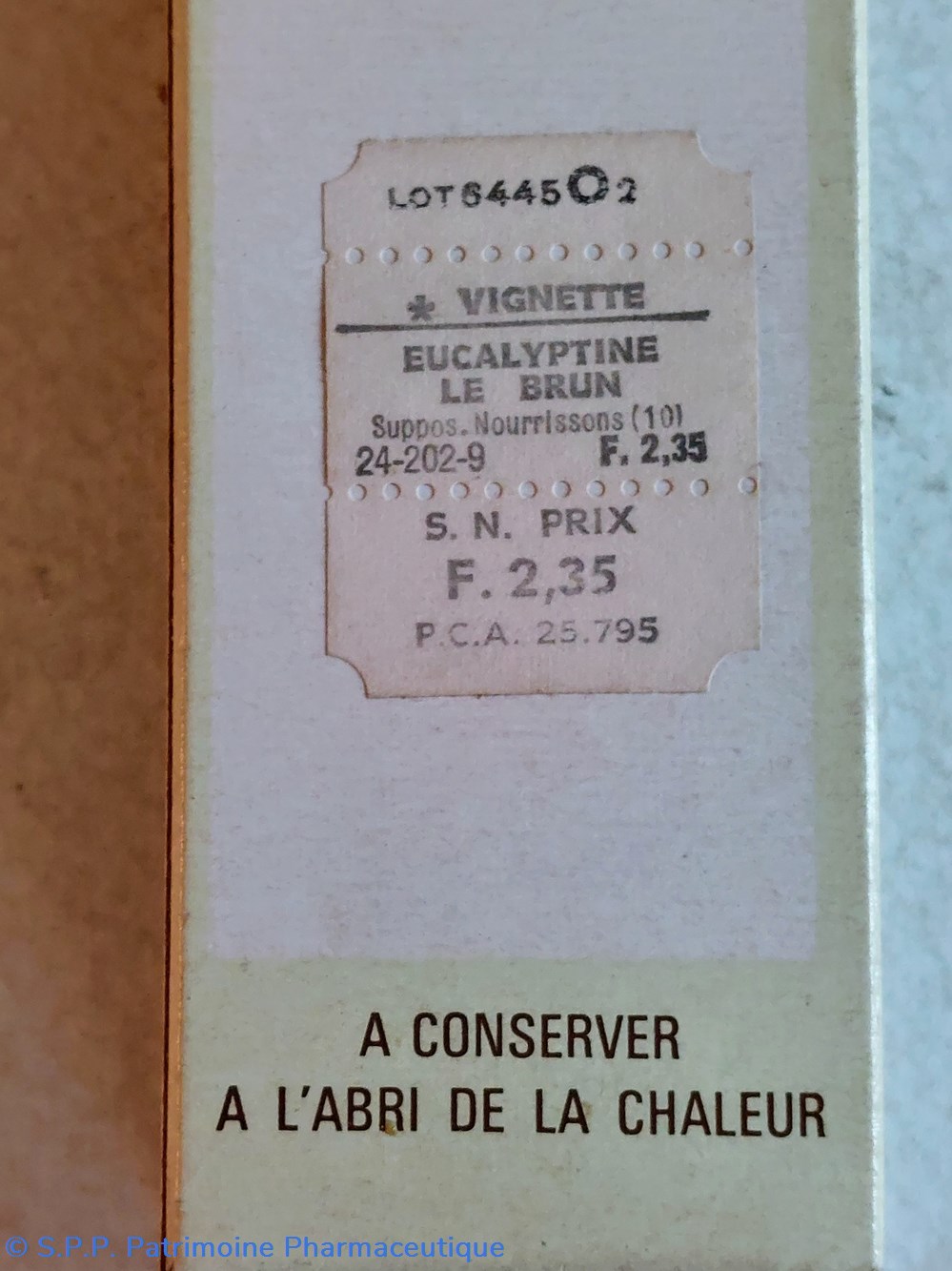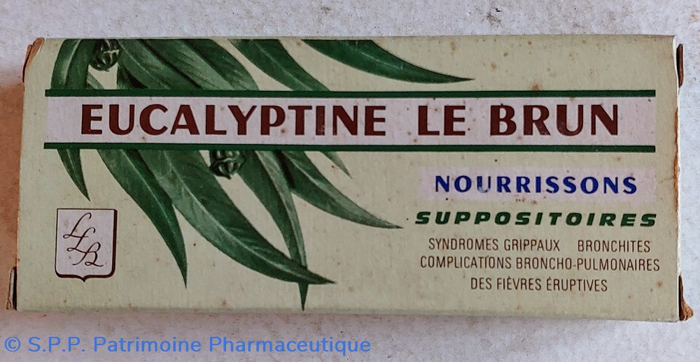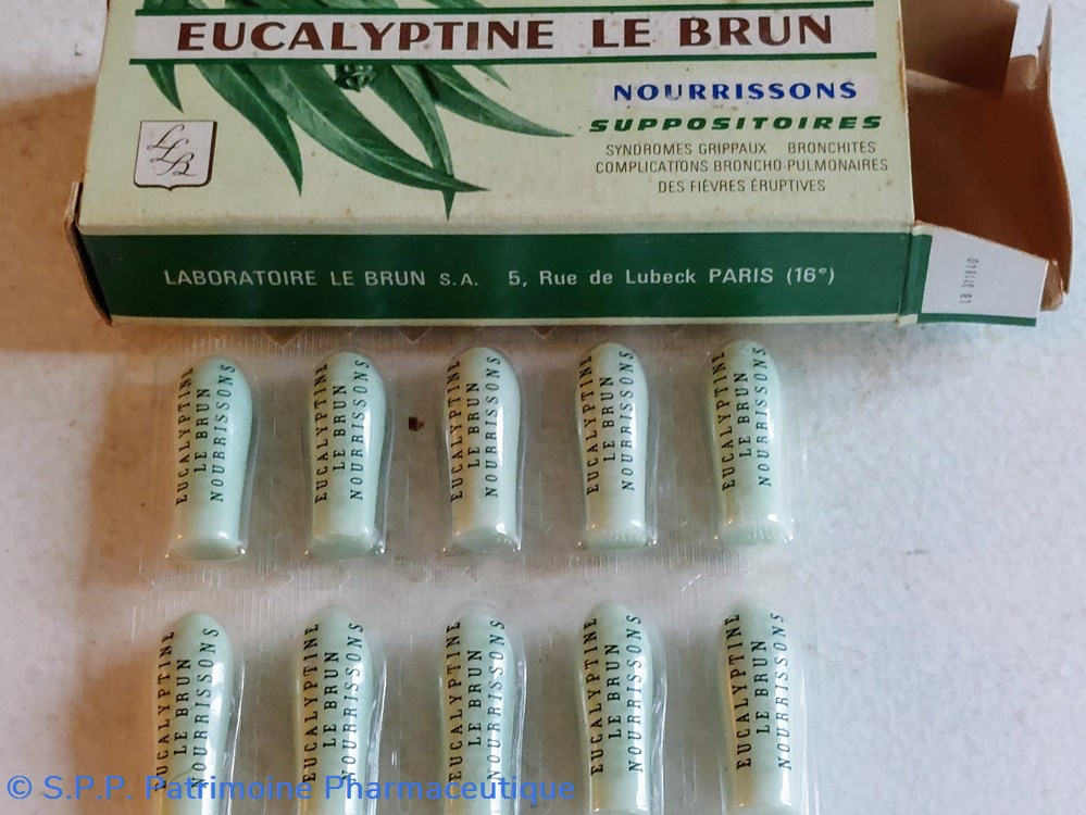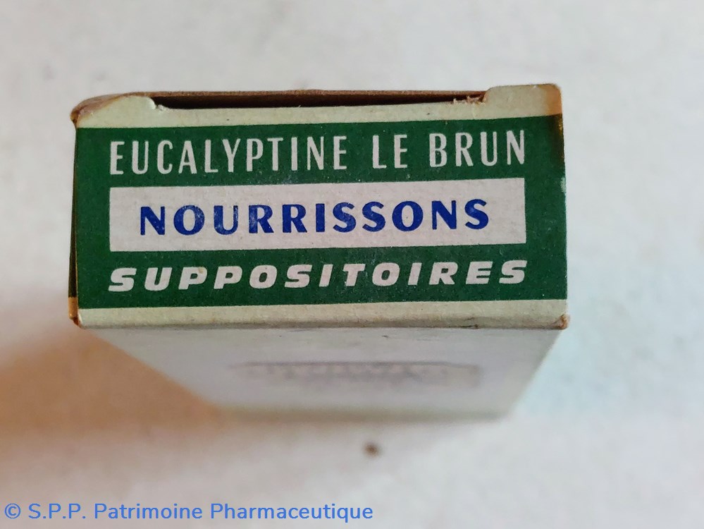 Boîte en carton contenant des suppositoires pour nourrissons EUCALYPTINE LE BRUN