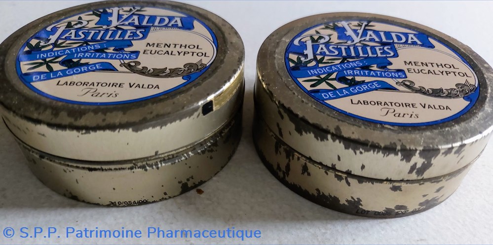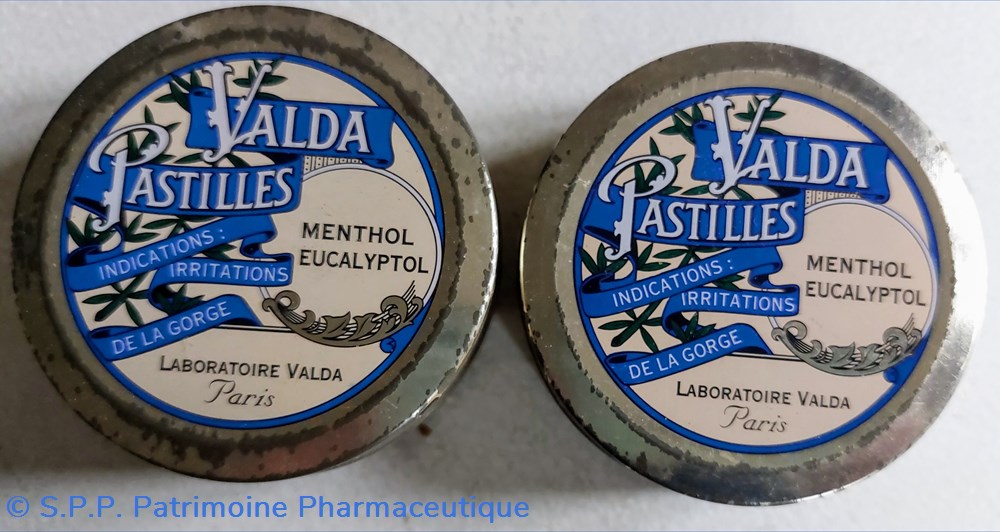 Lot de 2 Boîtes métalliques vides de forme ronde ayant contenu 50 PASTILLES VALDA MENTHOL EUCALYPTOL