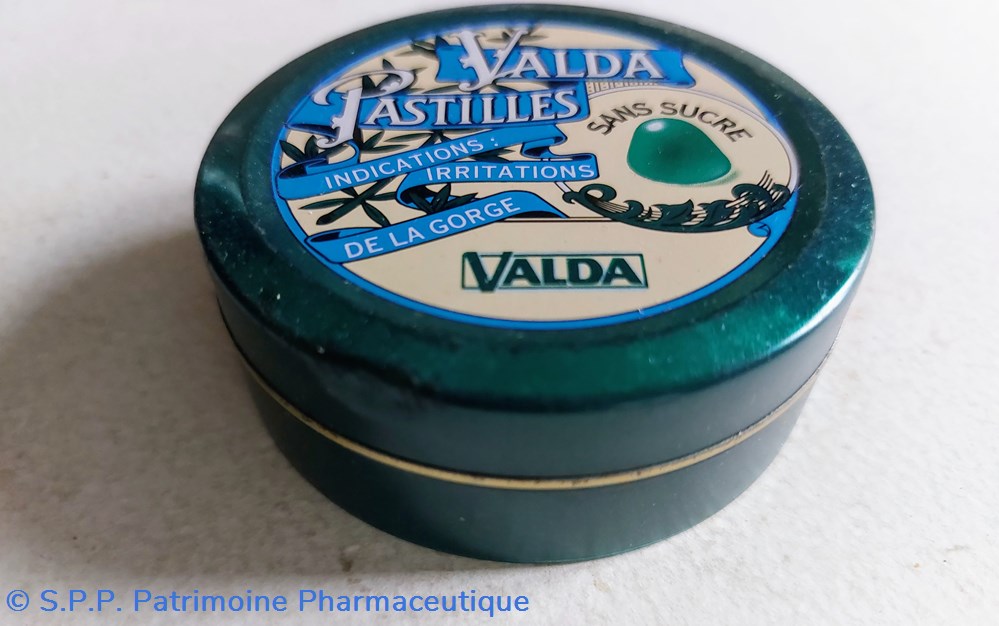 Boîte métallique vide de forme ronde ayant contenu 50 PASTILLES VALDA SANS SUCRE