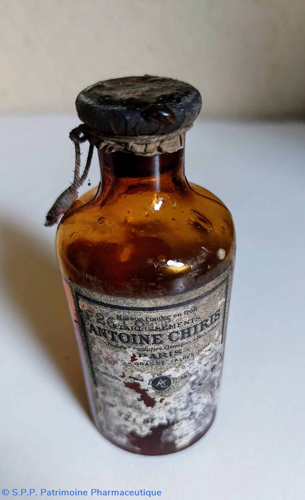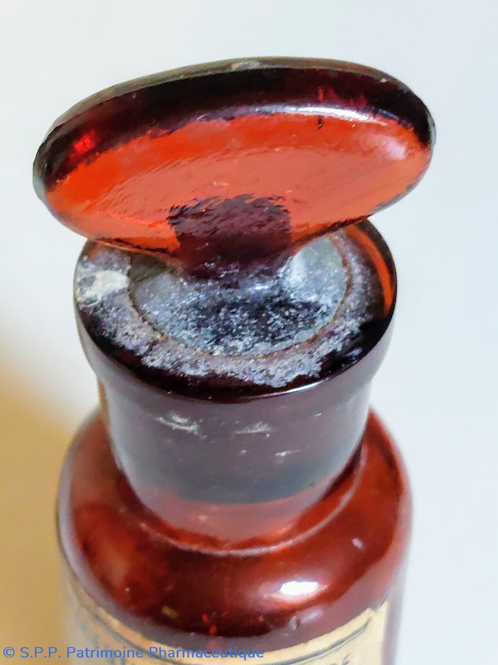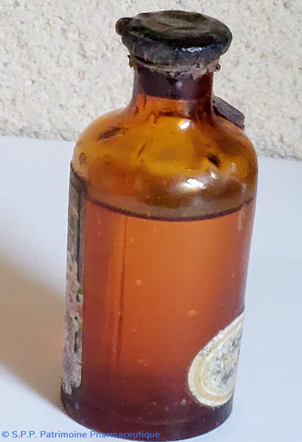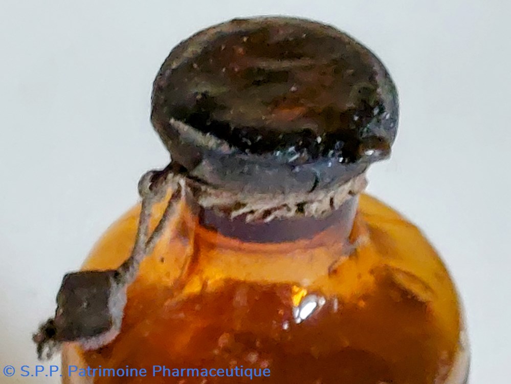 Flacon en verre ambré Hauteur 8 cm scellé d'origine avec cachet de cire et cordon.