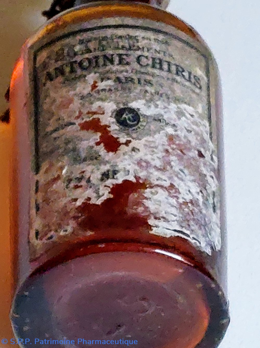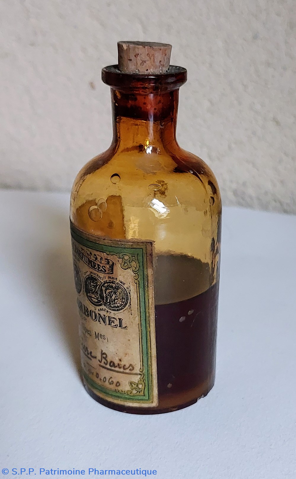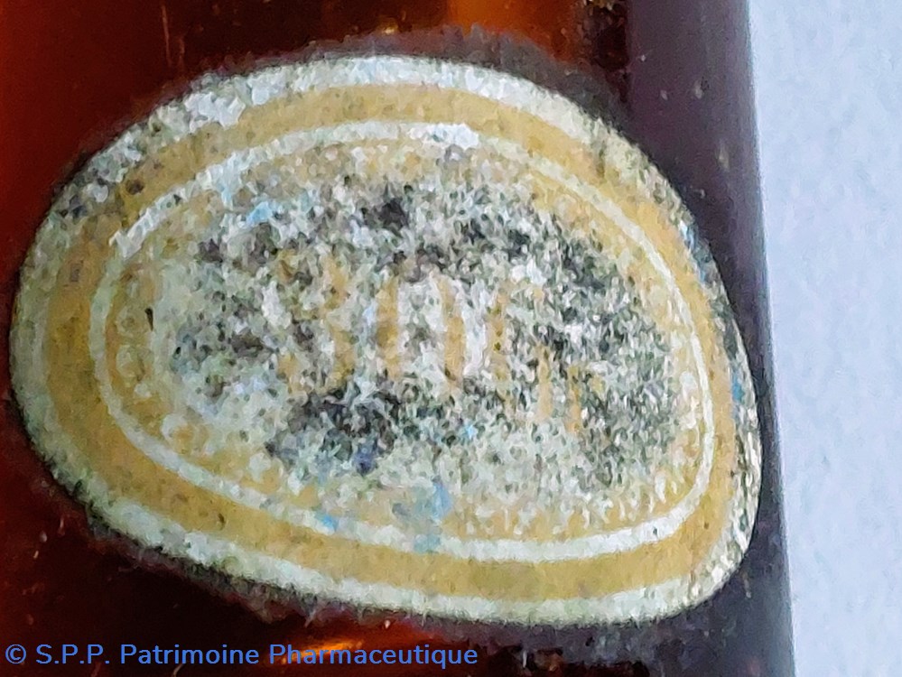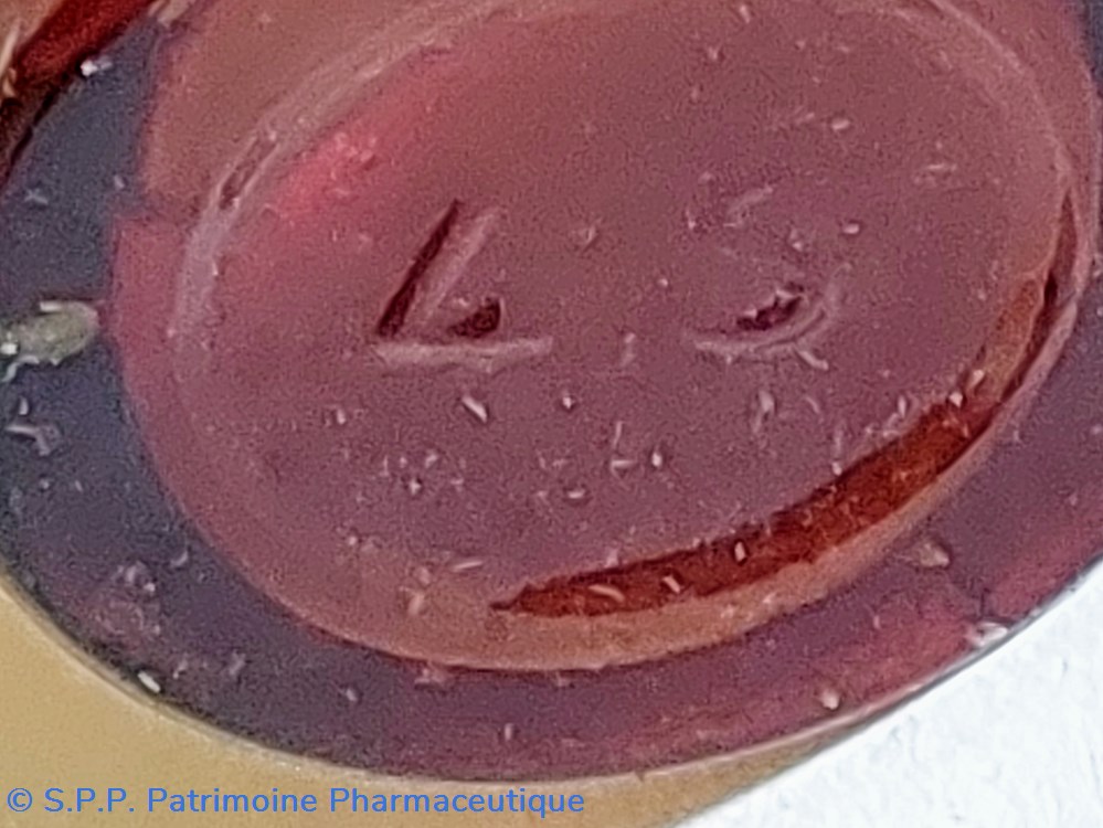 Flacon en verre ambré Hauteur 8 cm scellé d'origine avec cachet de cire et cordon.