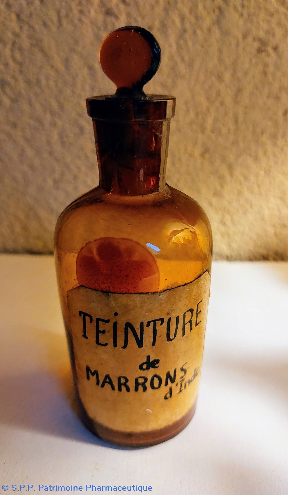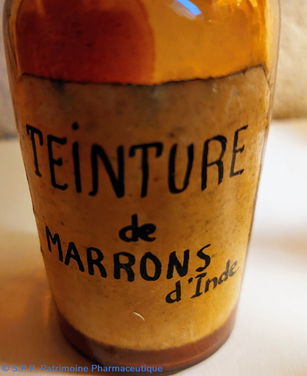 Étiquette manuscrite " Teinture de Marron d'inde"