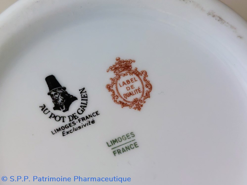 Marques sous le pot " Au pot de Galien" " Limoges France" " Label de qualité"