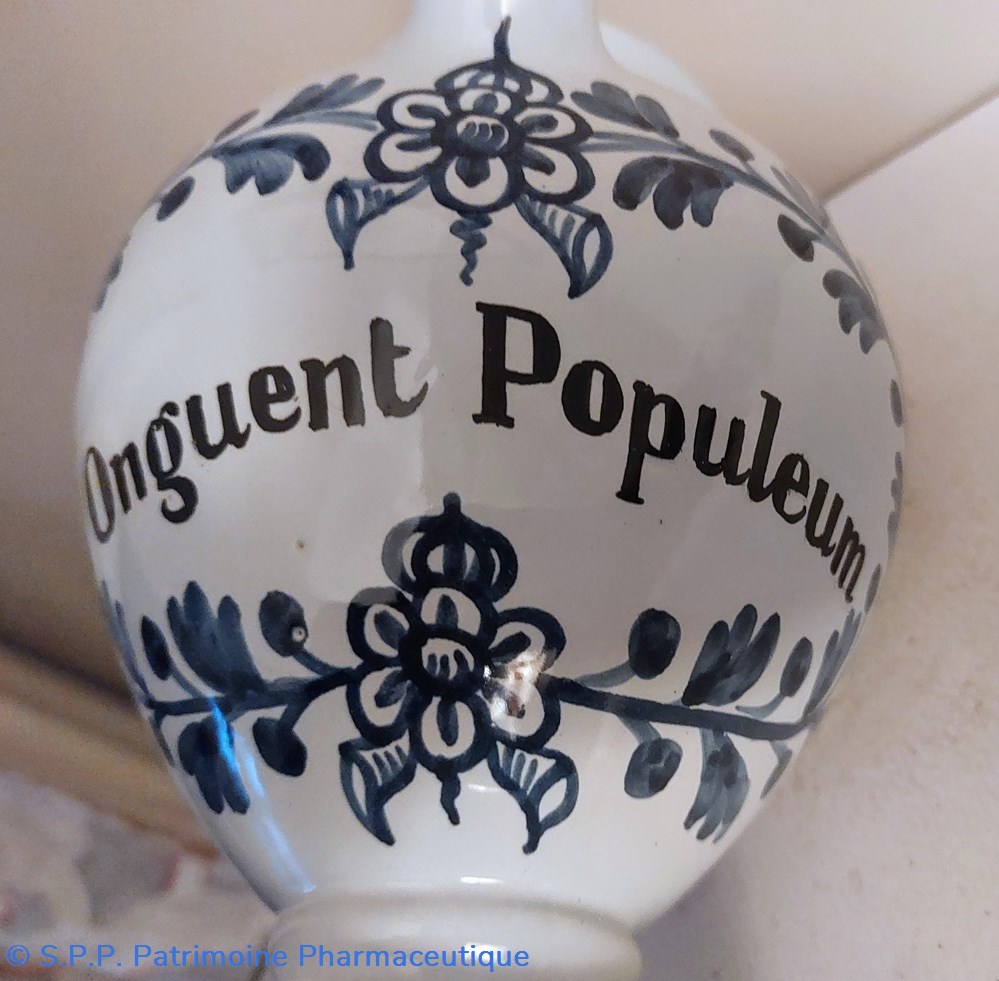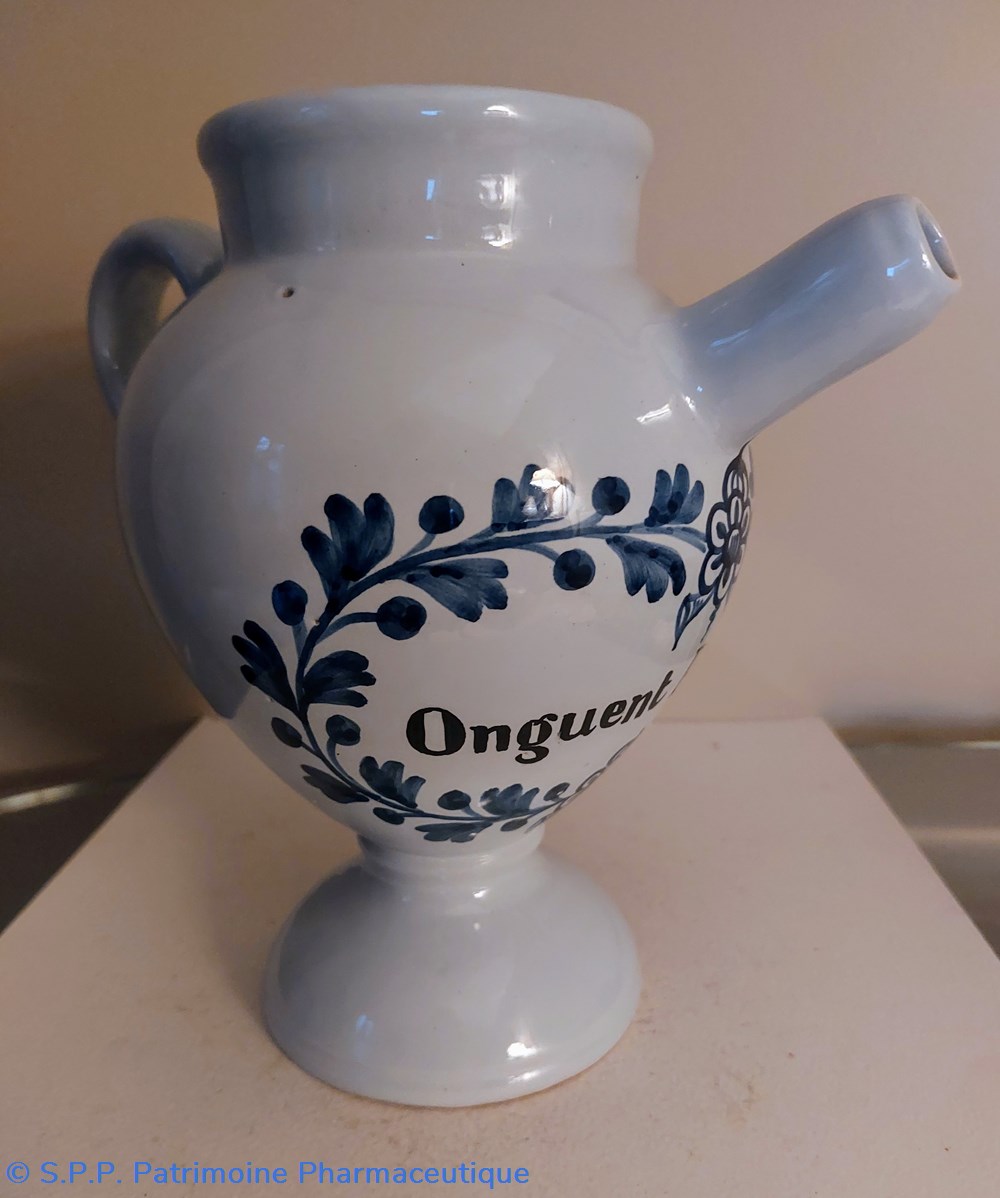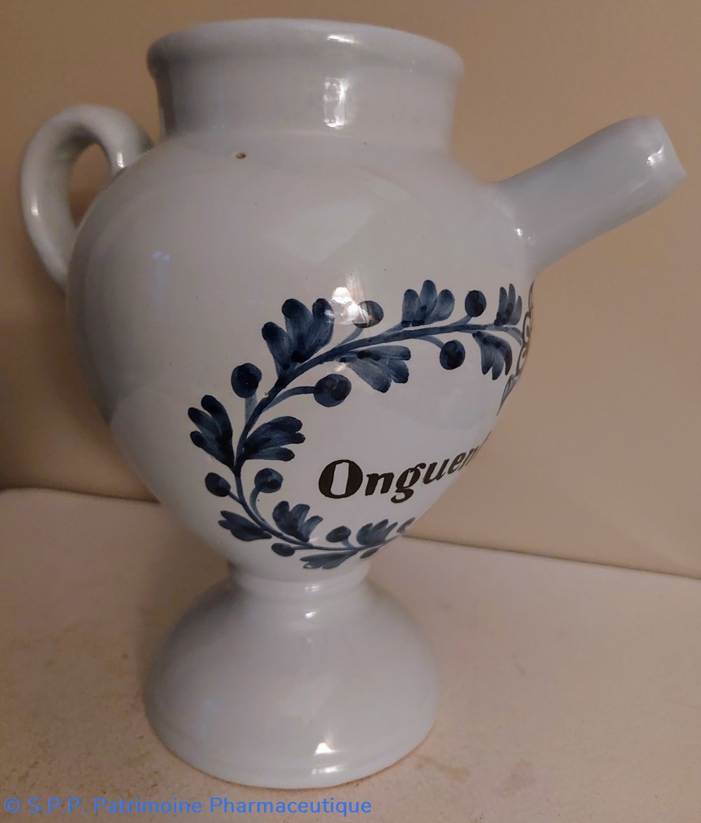 Chevrette à décor bleu " Onguent Populeum "