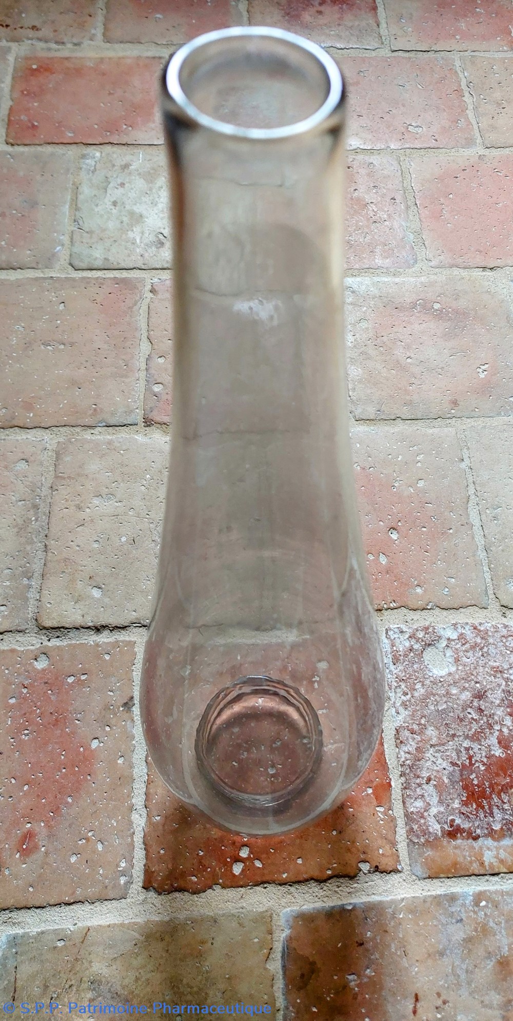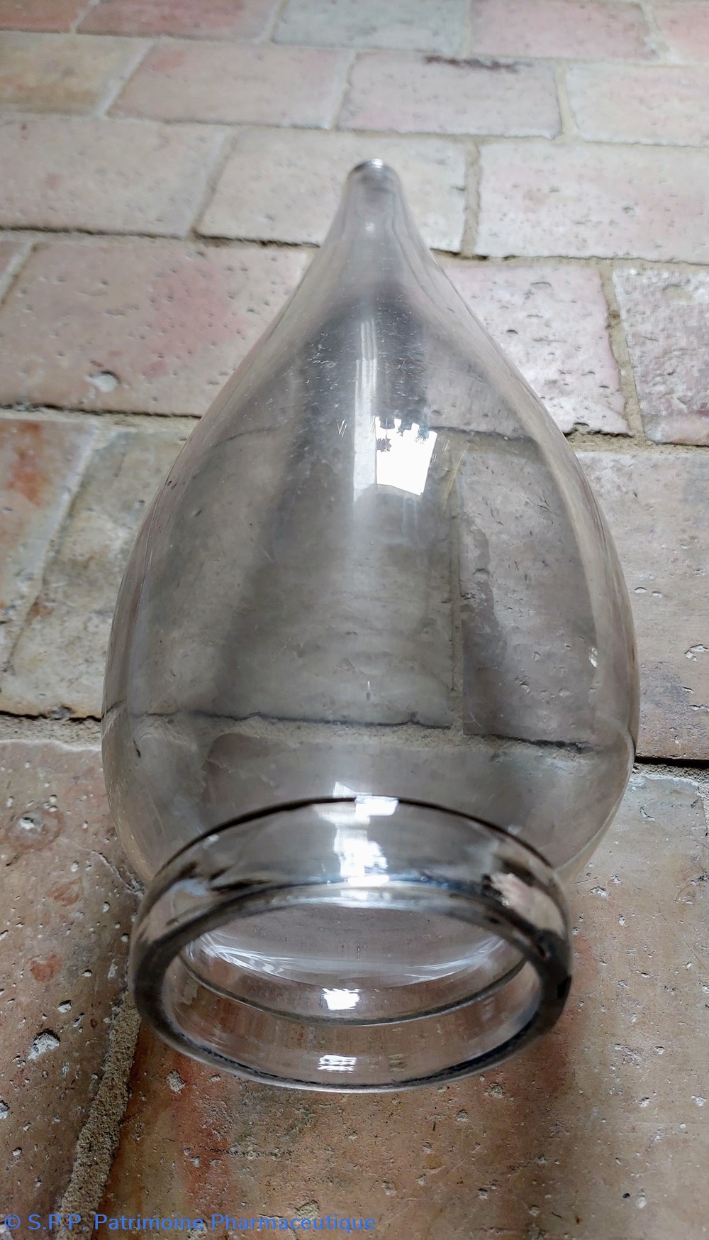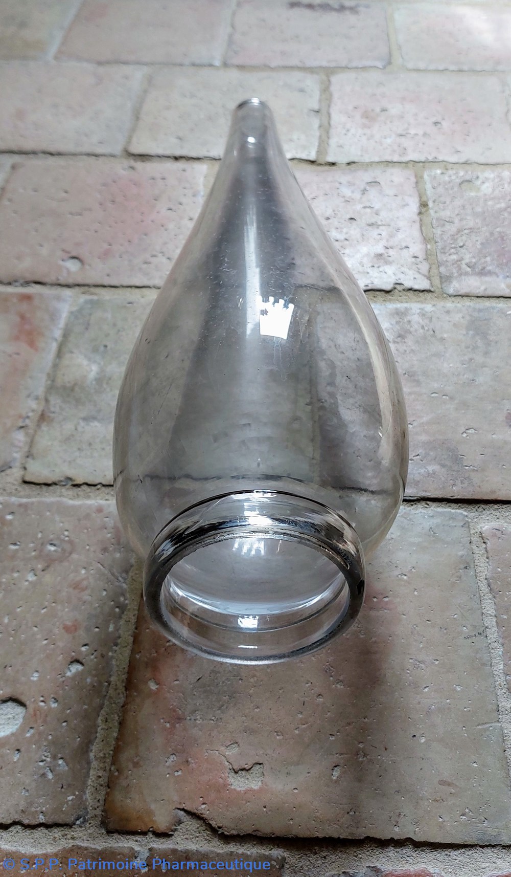 Objet en verre épais et incolore provenant d'une pharmacie de l' ouest de la France.
