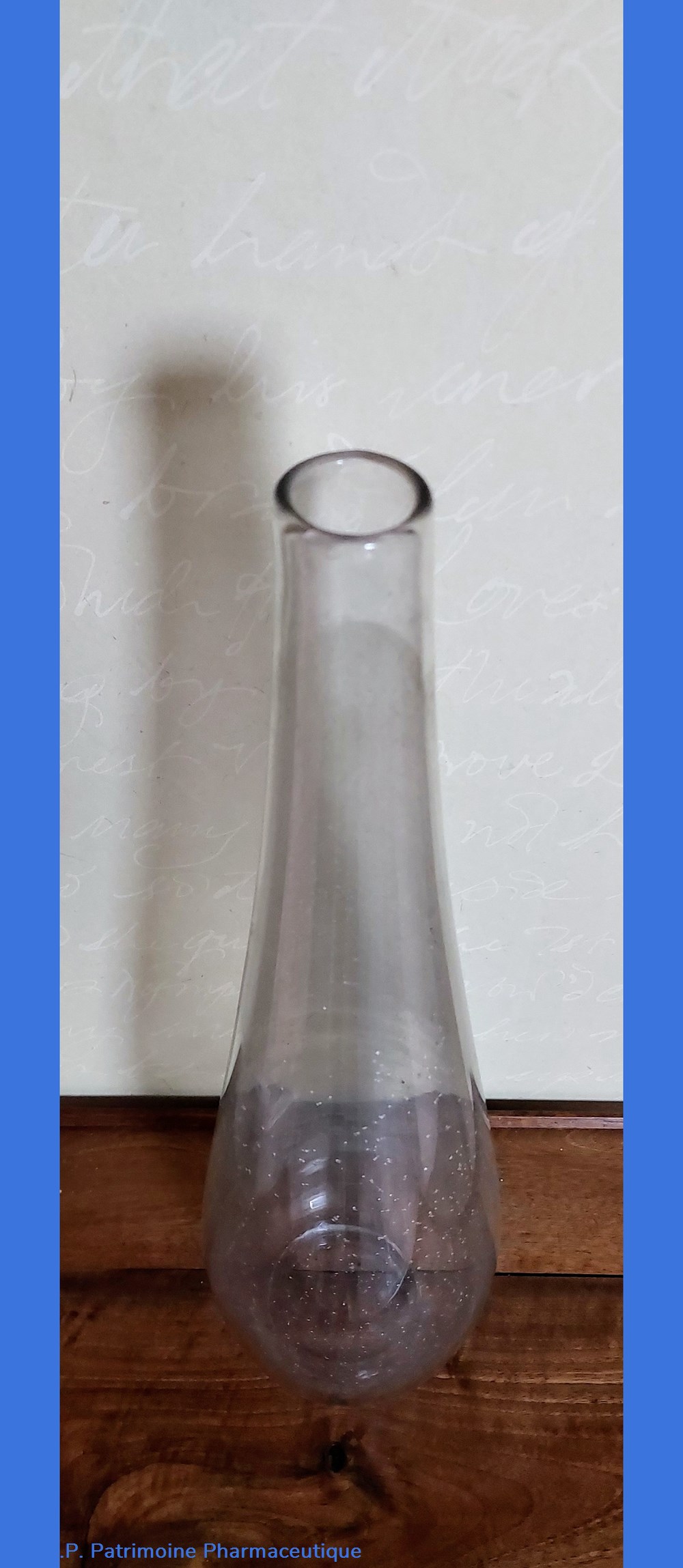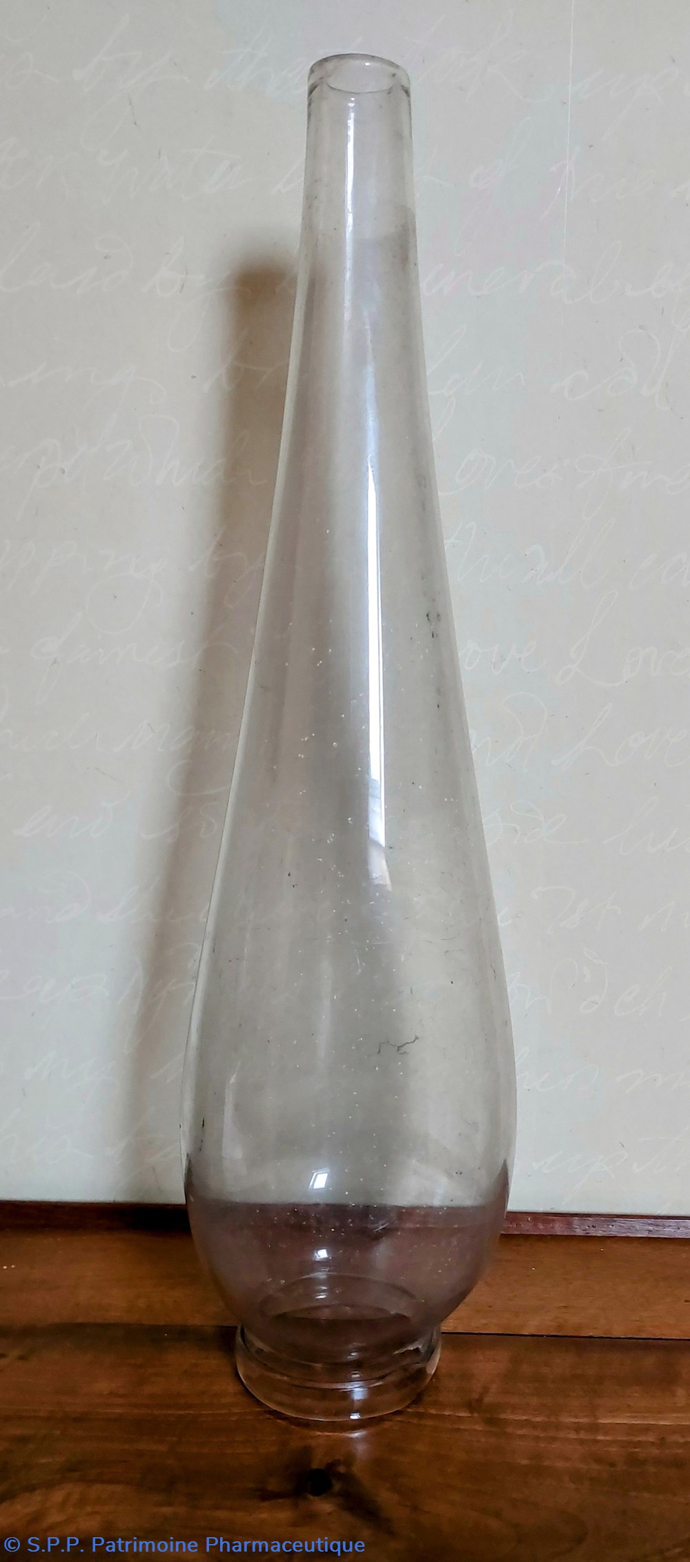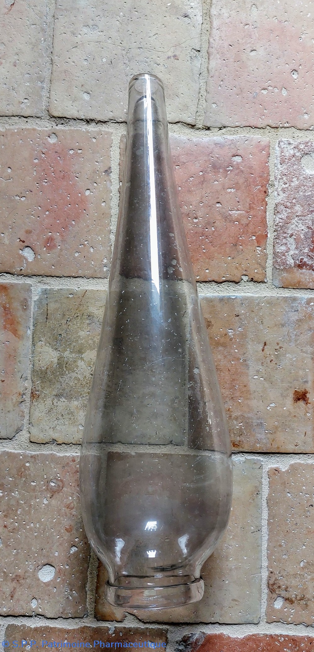 Objet en verre épais et incolore provenant d'une pharmacie de l' ouest de la France.