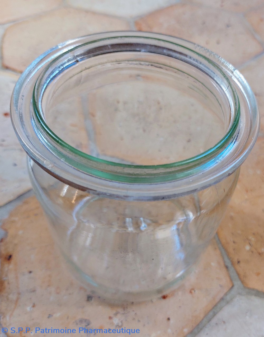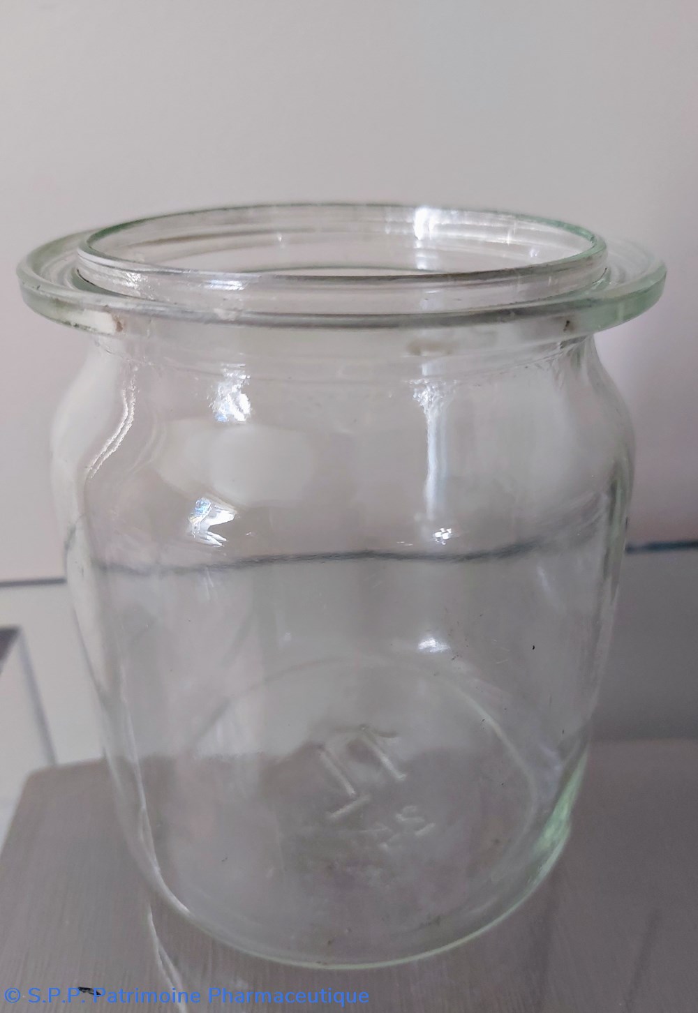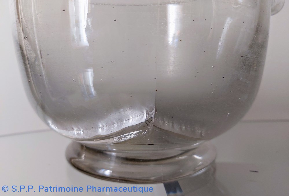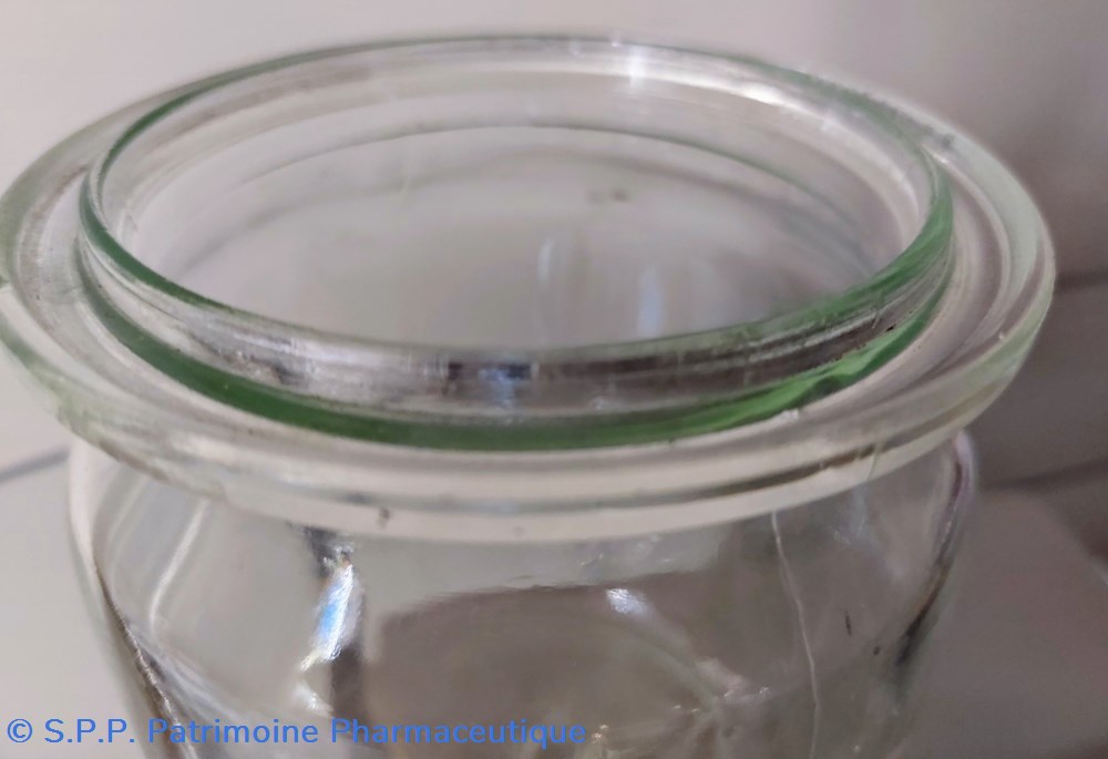 Au col du bocal, une rainure circulaire permettant de poser et stabiliser un couvercle.