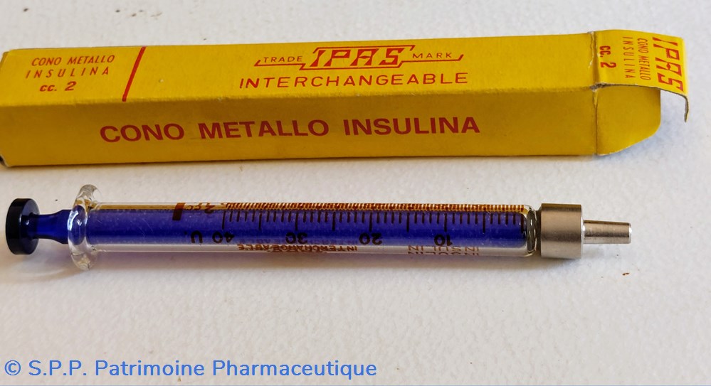 Dans un étui en carton une Seringue à insuline de 2 cc en verre