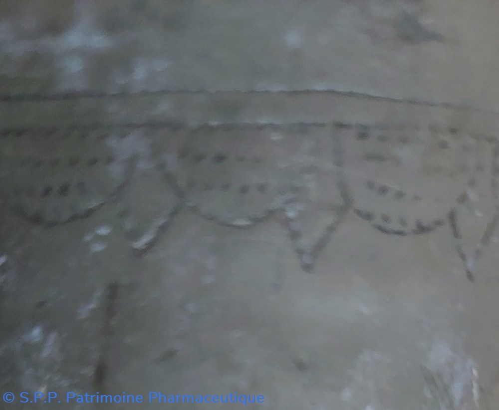 Décor festonné en bordure supérieure. En partie basse Décor de deux lignes circulaires et deux rangs de pointillés.