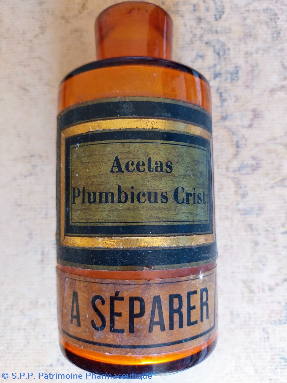 Flacon en verre ambré "Acetas Plumbicus Crist : " - " Acetas Plumbic : "