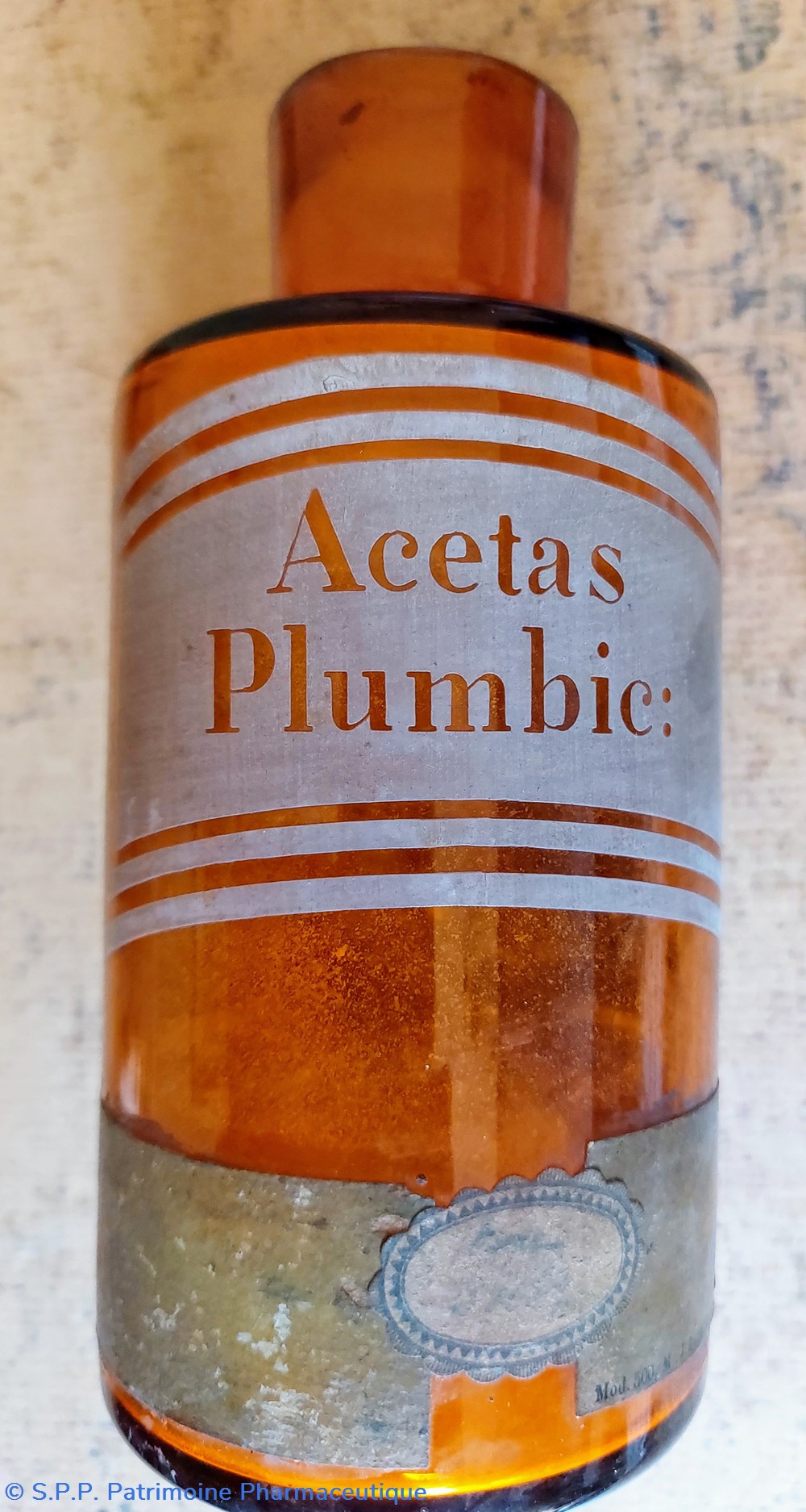 Inscription imprimée avec lettres transparentes : "Acetas Plumbic : "