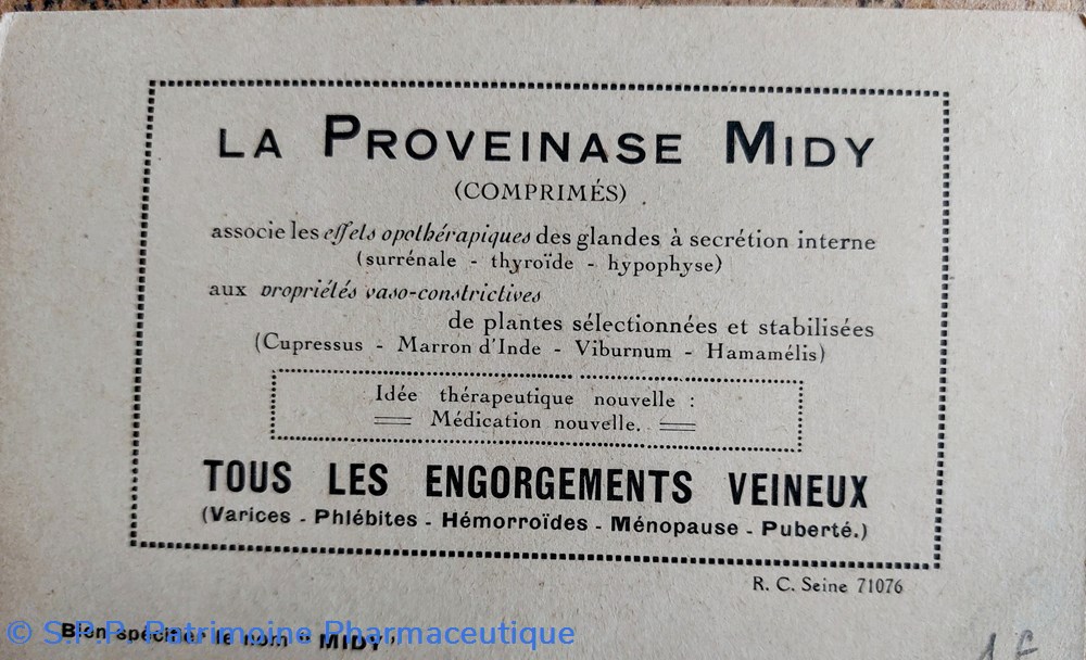 Verso : Argumentaires du produit : LA PROVEINASE MIDY Comprimés dragéifiés