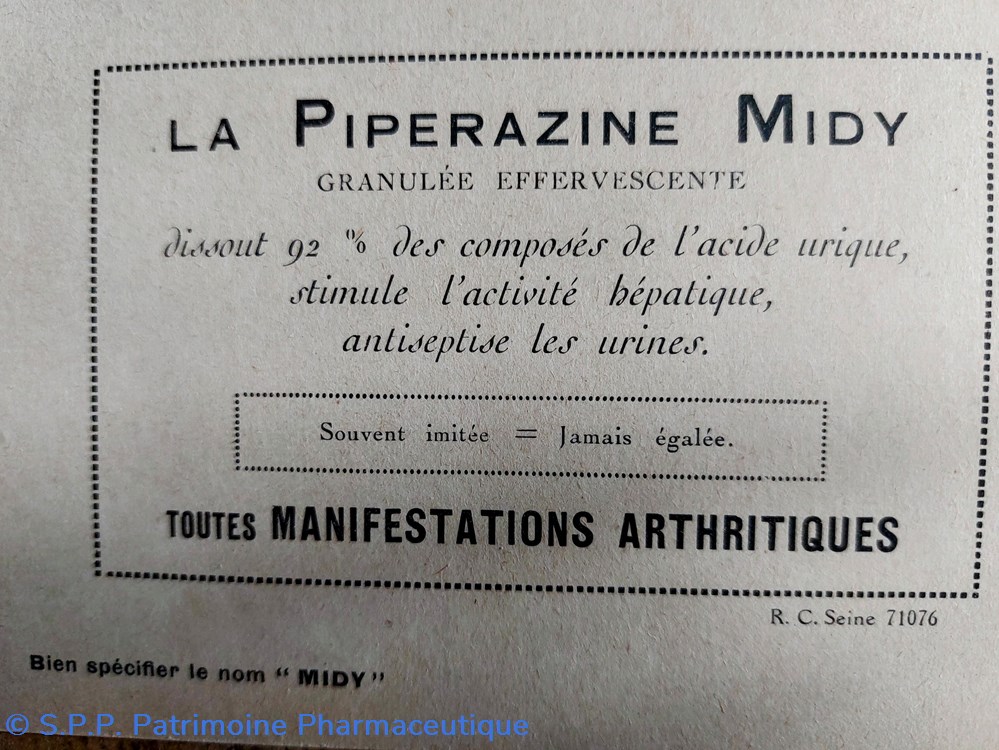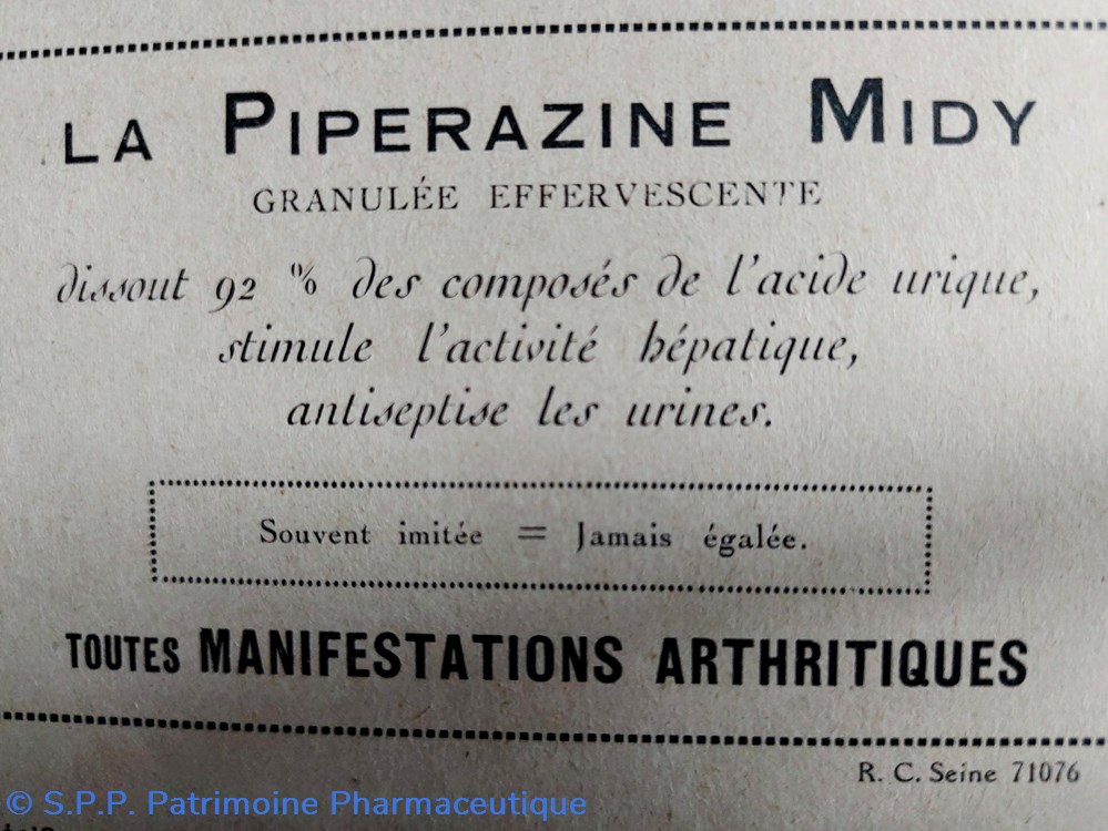 Verso : Argumentaires du produit : LA PIPERAZINE MIDY Granulés effervescents