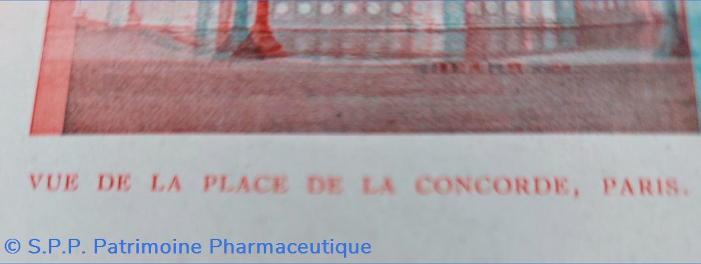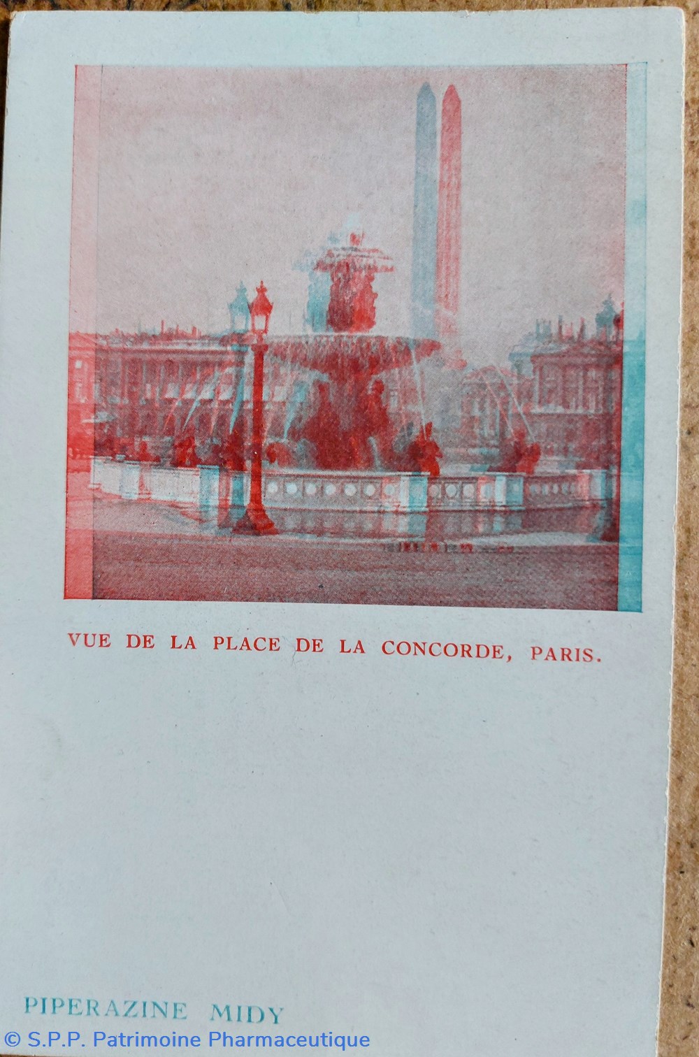 Recto : " Vue de la Place de la Concorde - Paris " Photographie avec effet graphique et impression de relief. Technique Lomochrome ?