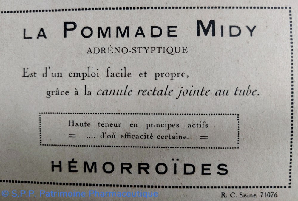 Verso : Argumentaires du produit : LA POMMADE MIDY Adréno-styptique
